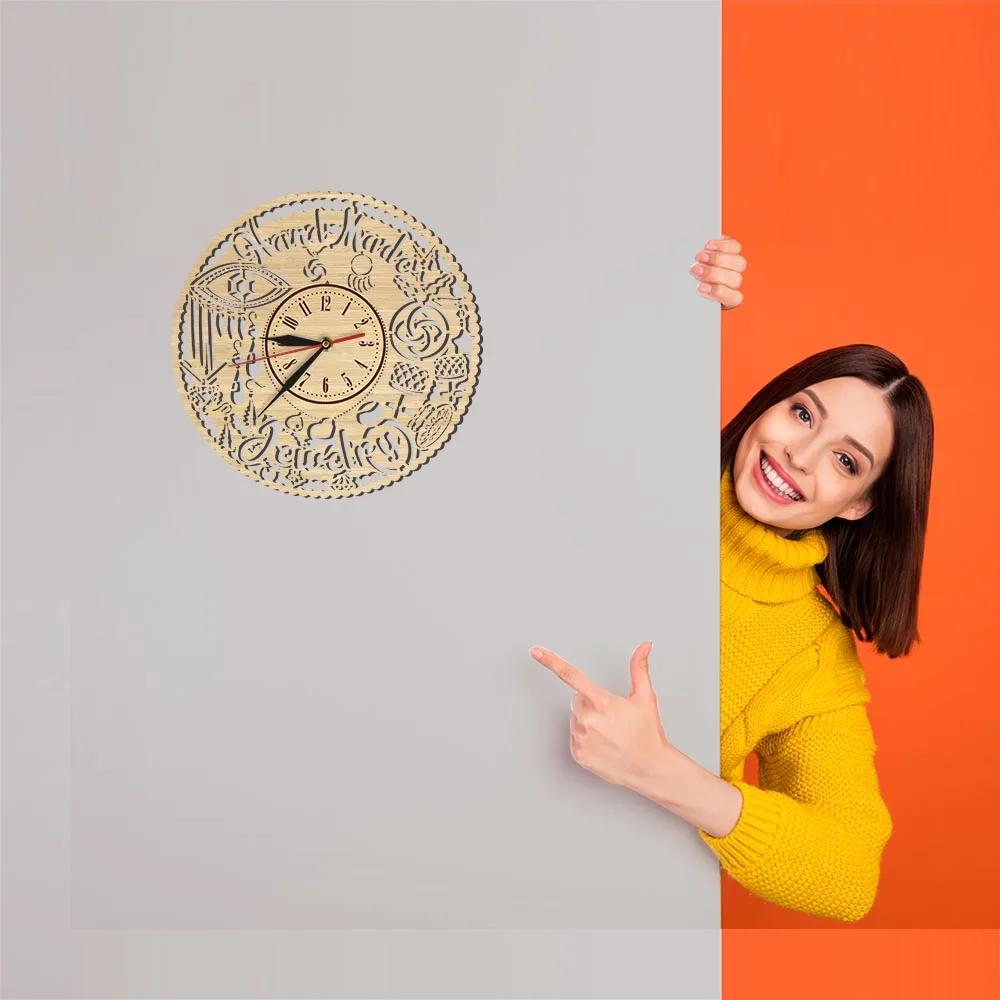 Пожалуйста, имейте в виду, что дерево-это натуральный материал, и поэтому все деревянные часы немного отличаются по цвету и деревянному рисунку; Каждый часы-это уникальный кусок дерева. Лазерная резка конструкций в фанеру придает каждой детали уникальный дымчатый запах!