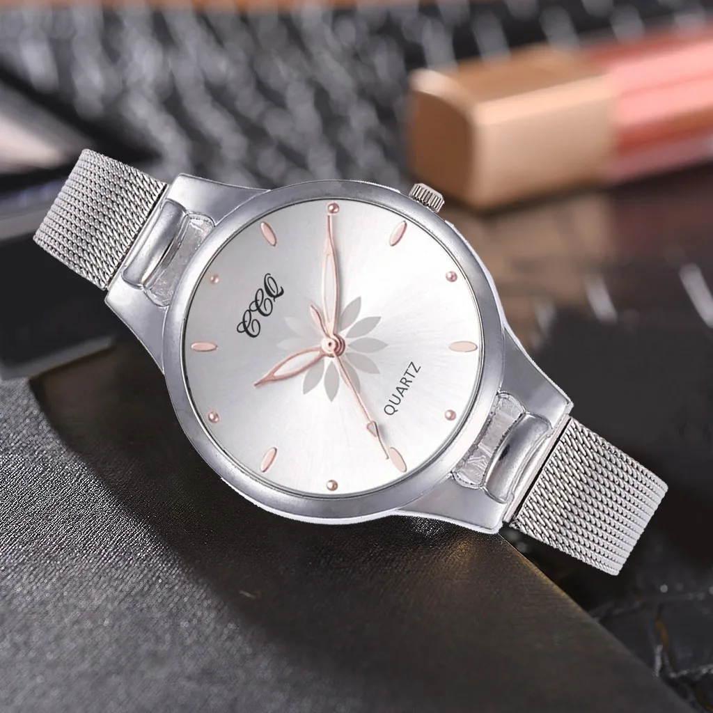 Простые и стильные женские кварцевые часы из нержавеющей стали с циферблатом лотоса