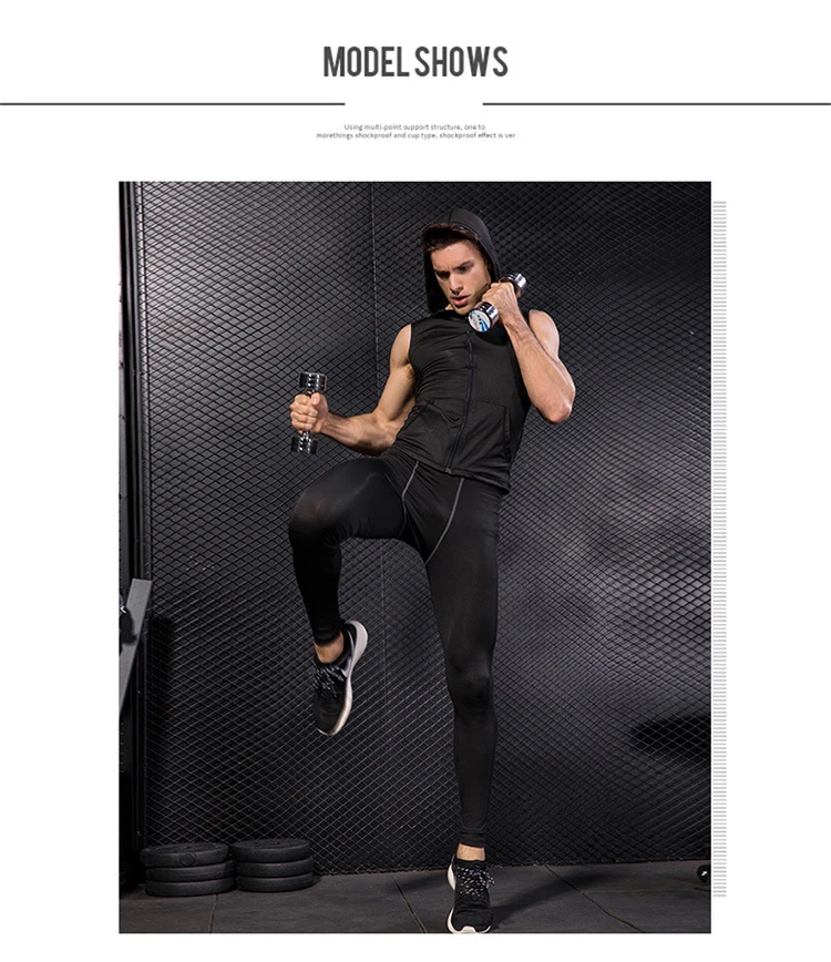 Футболка для бега, Мужская футболка для йоги, фитнеса с капюшоном, безрукавка, велосипедная рубашка, Рашгард, компрессионные рубашки