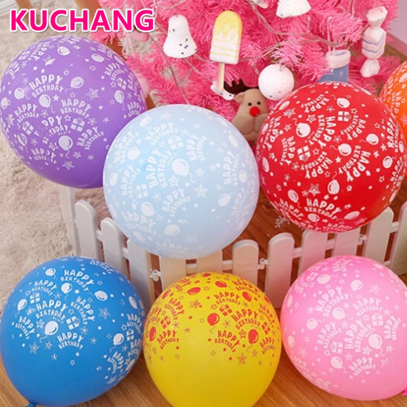10 шт 12 дюймов Смешанные Цвет с днем рождения латексные шарики с принтом детская День рождения украшения для взрослых вечерние поставки подарки