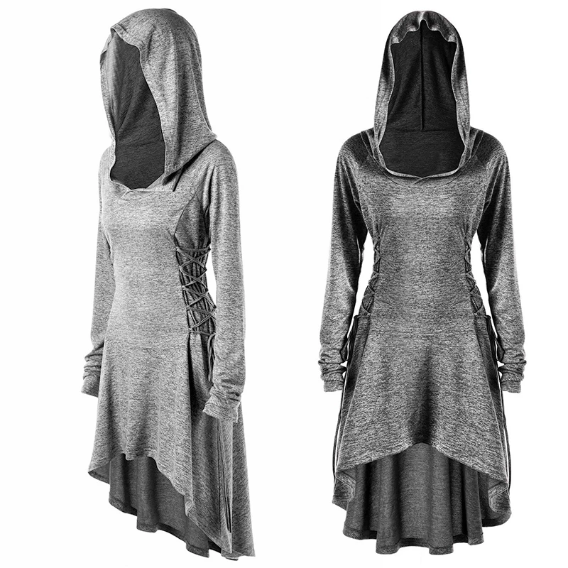 * Описание товара: Женский длинный рукав осень зима Повседневный свитер Мини-кофты с капюшоном платье