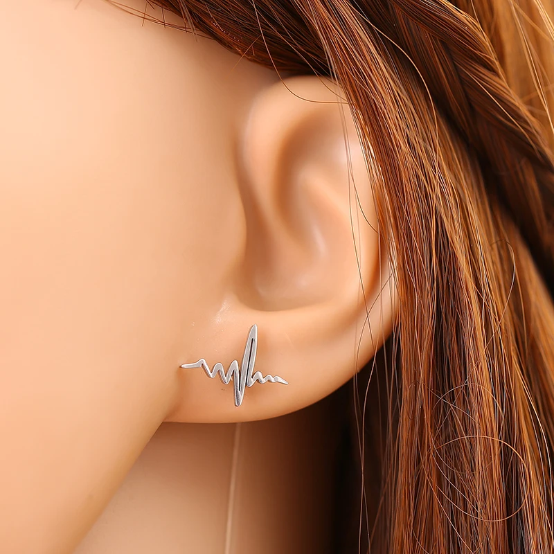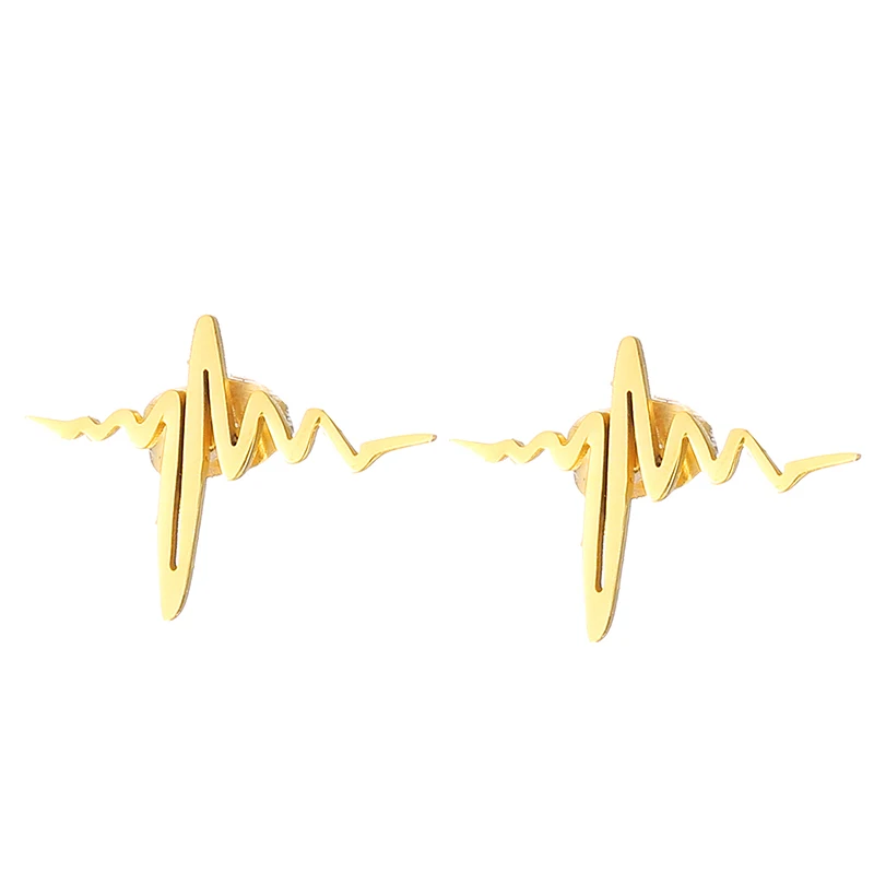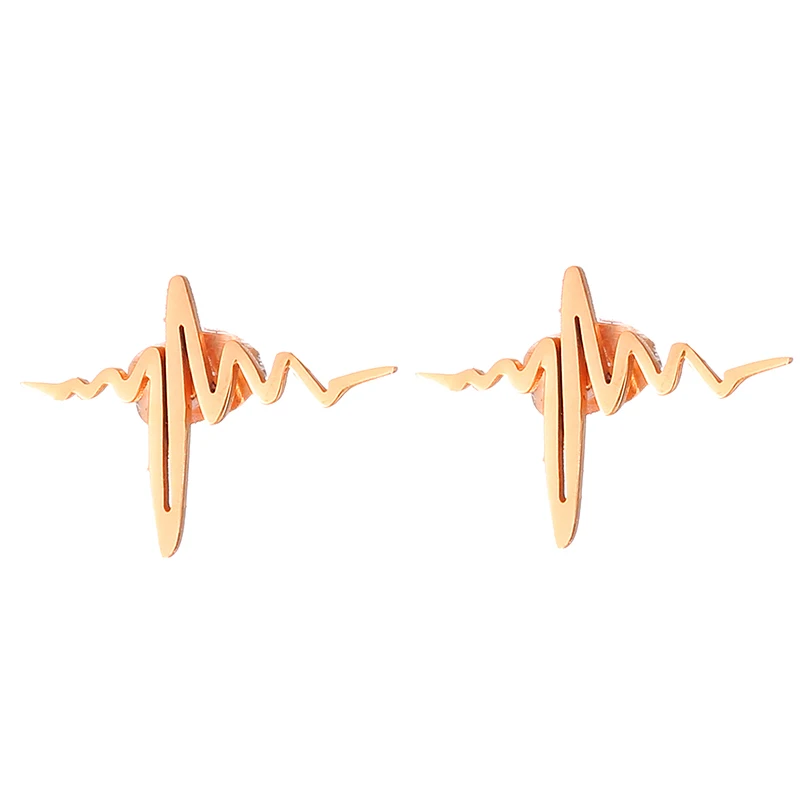 Серьги-гвоздики из нержавеющей стали с сердцебиением для женщин, золотой, серебряный, розовый цвет, простой костюм с буквами, медицинские модные ювелирные изделия, серьги