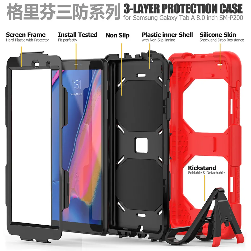 Для Samsung galaxy tab A 8,0, 2019 (S Pen), 8,0, SM-P200, P200, P205, P207, для планшета, ударопрочный, Жесткий Чехол, военный, сверхпрочный, силиконовый, прочный, защитный чехол + пленка + стилус