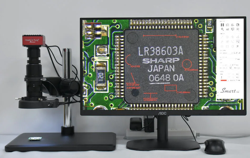 2K точность измерения параметров камеры: Разрешение: 1920 × 1080 Размер пикселя: 3,75 мкм × 3,75 мкм Целевой Размер: 1/2 Количество бит данных: 12 бит Метод экспозиции: прогрессивное воздействие Частота выходного кадра: 60 кадров в секунду Цвет на выходе: цвет Поддержка U функции хранения диска, можно подключить внешнюю мышь Интерфейс: HDMI Новая система снова улучшается? Четкость изображения Использование высокой чувствительности SONY; Датчик низкого уровня шума, мощная производительность, плавный просмотр. Используя двухъядерный процессор ARM Cortex A7 @ Max1.3GHz, плавная и стабильная работа. Встроенное видео, функция съемки изображения может быть воспроизведена Встроенная функция автоматического поиска кромок для улучшения эффекта измерения. Поддержка U функции хранения диска, можно подключить внешнюю мышь Встроенная научно-исследовательская Система точного измерения, новый пользовательский интерфейс для редактирования, пользовательский шаблон редактирования, шаблон импорта Dxf, управление файлами, функция экспорта данных измерений, операция более интеллектуальная; быстрее и мощнее. 20X-180X C-Mount Параметры объектива: Окуляр: 0,4x CTV высокое разрешение, высокое разрешение Увеличение: 0.7X-5X, может блокировать увеличение Рабочее расстояние: 105 мм Поле зрения: 25 мм-3 мм 144 светодиодный светильник источник: Цвет лампы: белый Материал корпуса: пластик Цвет корпуса лампы: черный или белый Входное напряжение: 100 ~ 240 В/50 Гц, 60 Гц переменного тока Выходное напряжение и мощность: 12 В постоянного тока <4 Вт Яркость: 30000lx ~ 40000lx (при рабочем расстоянии 80 мм) Размер подключения: Φ61мм Диапазон затемнения: 0 ~ 100% Рабочее расстояние: 50 ~ 250 мм Диаметр прозрачного отверстия: Φ60.5мм Оттенок: полностью прозрачный Вес брутто одного комплекта: 0,25 кг Список конфигурации: 1*2K промышленная камера 1 * Мощность 1 * c-крепление объектива 1 * светодиодный светильник 1 * кронштейн верстак 1 * HDMI линия 1 * измерительная коррекционная линейка 1 * мышь