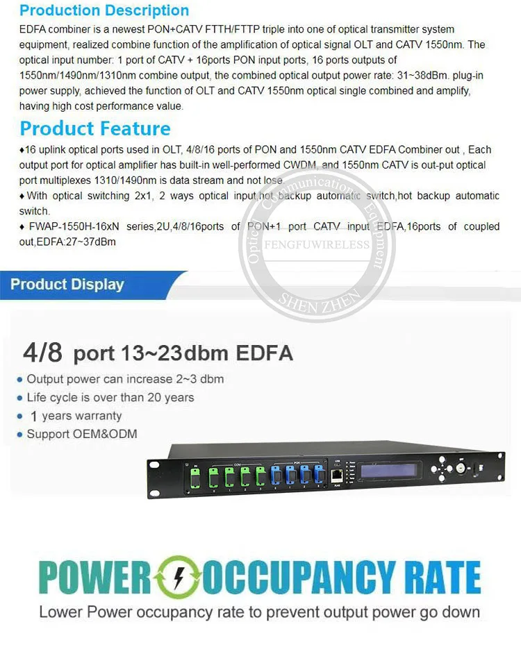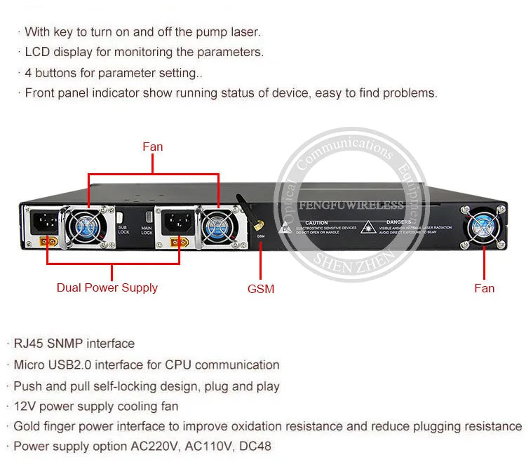 Волоконно-оптический усилитель 1550nm CATV WDM 4 порта EDFA 1310/1490/1550nm, 1U/80 Вт Высокая мощность 16/18/22dBm WDM волоконно-оптический усилитель
