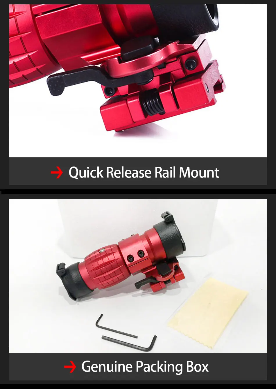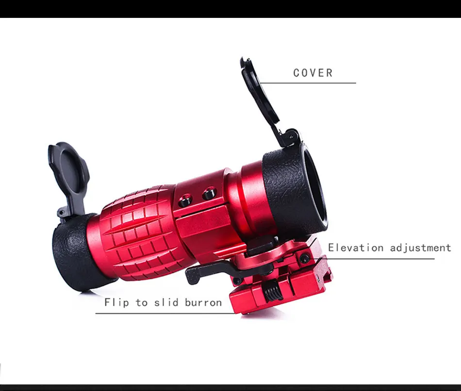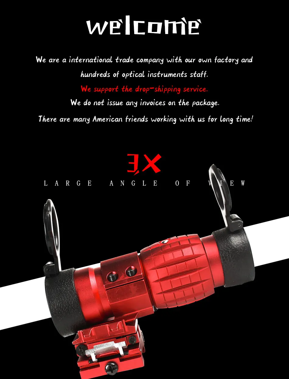 Magnification:3X Eye Relief:At 5° FOV 40 90 mm At full FOV 60 65 mm Field OF View(@100yds) : 7 Accessories:Flip up mount Constructed by durable aluminum alloy with anodized matte black finish. Mountable on a rail system behind all Aimpoint sights. Provides extended range to the operator. Multi-coated lenses(Blue). Diopter can't be adjustable. The FTS mount is rugged and fits tight without wiggle. Fits on Weaver/Picatinny Rail. Weatherproof and shockproof
