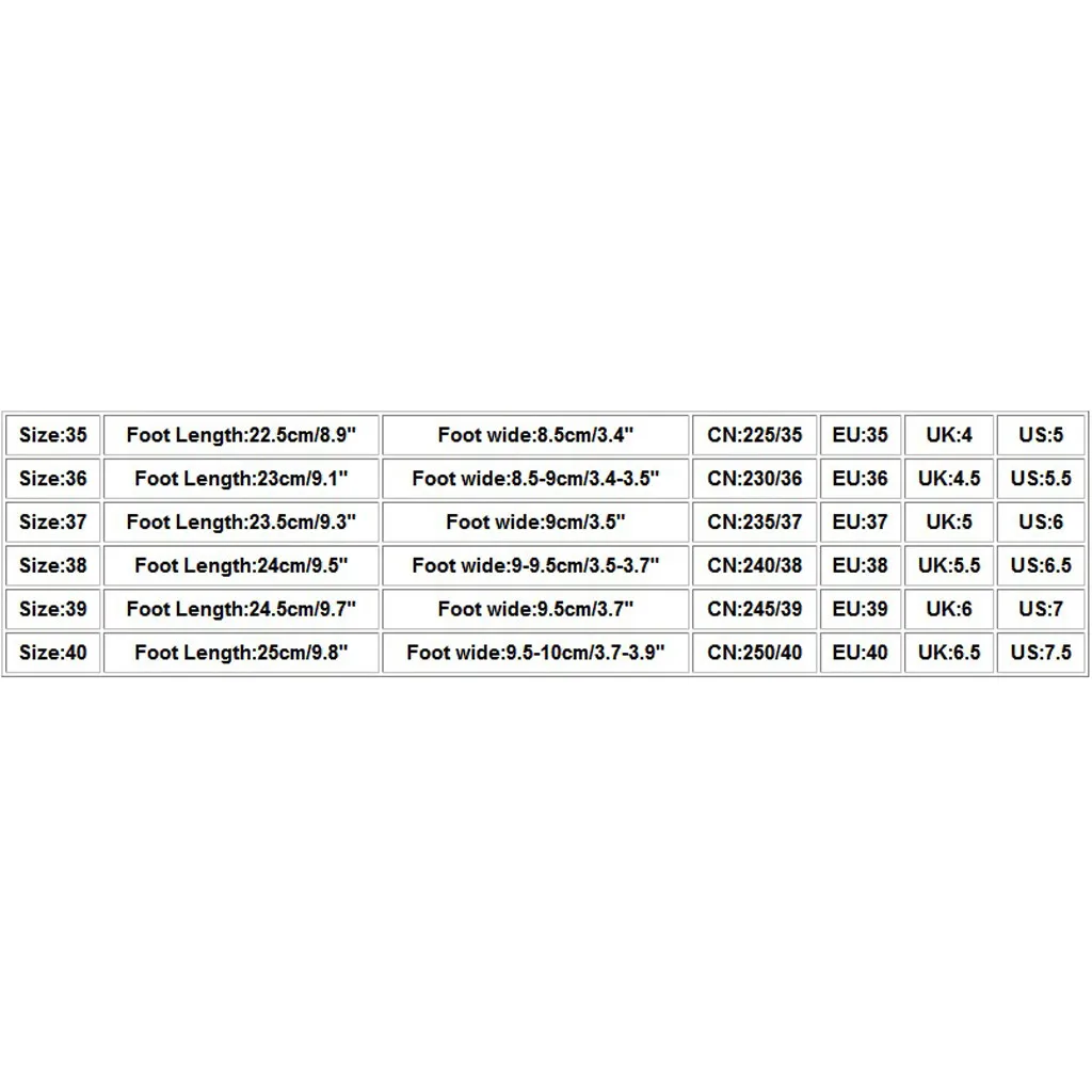 | Размер: 36 | Длина стопы: 23 см/9,1 дюйма | Ширина стопы: 8,5-9 см/3,4-3,5 дюйма | CN: 230/36 | ЕС: 36 | Великобритания: 4,5 | США: 5,5 |
