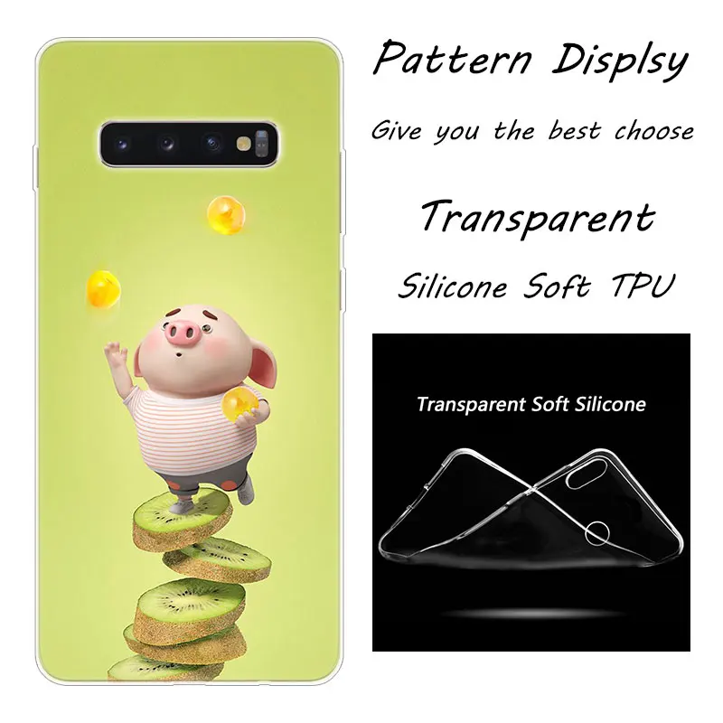 BinFul Cute Cartoon Piggy Hot Fashion Transparent soft silicone TPU Cover Cases For Samsung Galaxy S7 S7 Edge S8 S8 Plus S9 S9 Plus S10 S10E S10 Plus A5 2017 A7 2017 A6 2018 A7 2018 A8 2018 A9 2018 A6 Plus A8 Plus cover case.