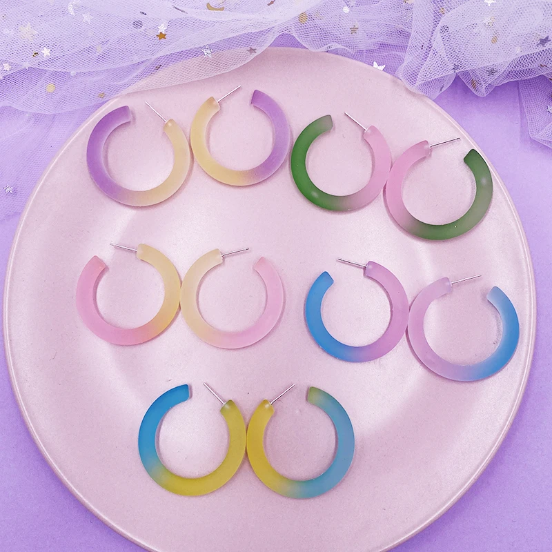 Акриловые серьги-кольца из лимонного желтого люцита, летние цветные Серьги фруктового сока, сказочные матовые геометрические серьги с-образной формы, корейские эффектные ювелирные изделия