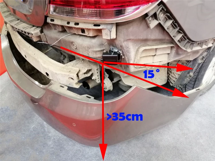 * Закрепите радар-датчик на задней панели автомобиля после снятия заднего бампера. * Чем выше высота установки радара, тем дальше расстояние обнаружения. * Соедините каждый два коннектора одного цвета о радарной системе. * Замените оригинальное стекло бокового зеркала автомобиля, Подключите светодиодный провод к радарной системе. * Соедините провод возле стекла с положительным электродом индикасветильник для управления работой зуммера. * Подключите провод питания к положительному электроду ACC автомобиля. И Подключите отрицательный электрод к отрицательному электроду аккумулятора.