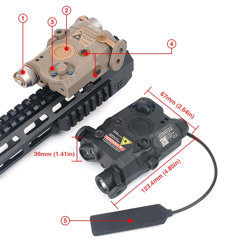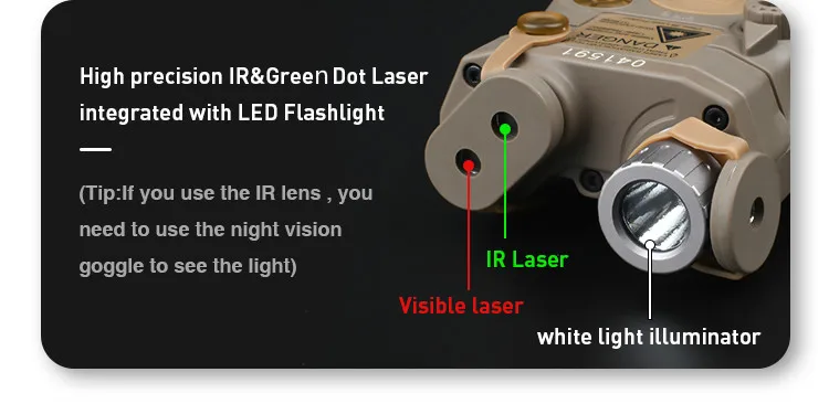 1. Высокоточный ИК и зеленый точечный Лазер, Интегрированный Светодиодный светодиодным фонариком Тактический переключатель: светодиодный свет/ИК/зеленый лазер 2. Кнопка и провод дистанционного управления переключатель работает с селекторным переключателем 3.UHP внешний вид