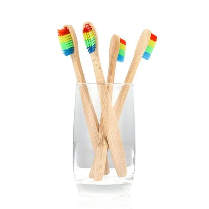 Хит 1/4 шт зубная щетка бамбуковая деревянная ручка Радужная мягкая щетина уход за полостью рта зубная щетка для взрослых и детей SJ66