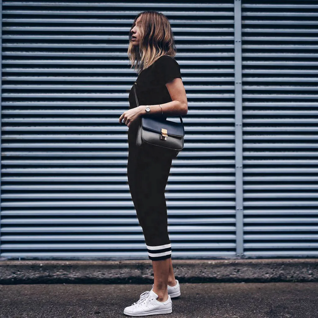 Женские Повседневные Вечерние платья до середины икры в полоску с коротким рукавом