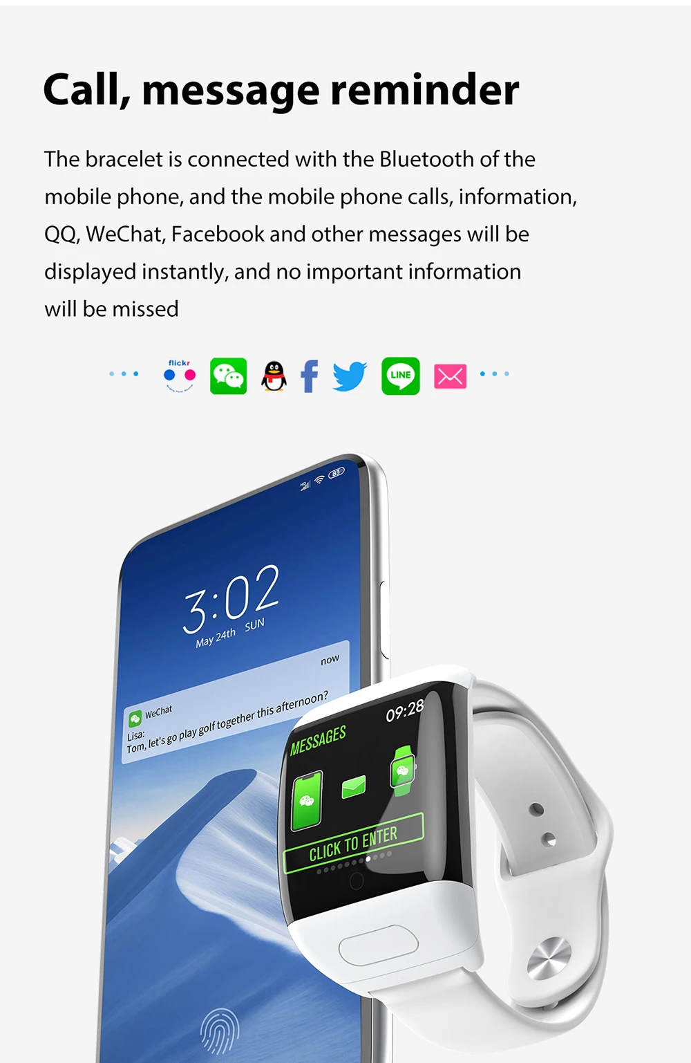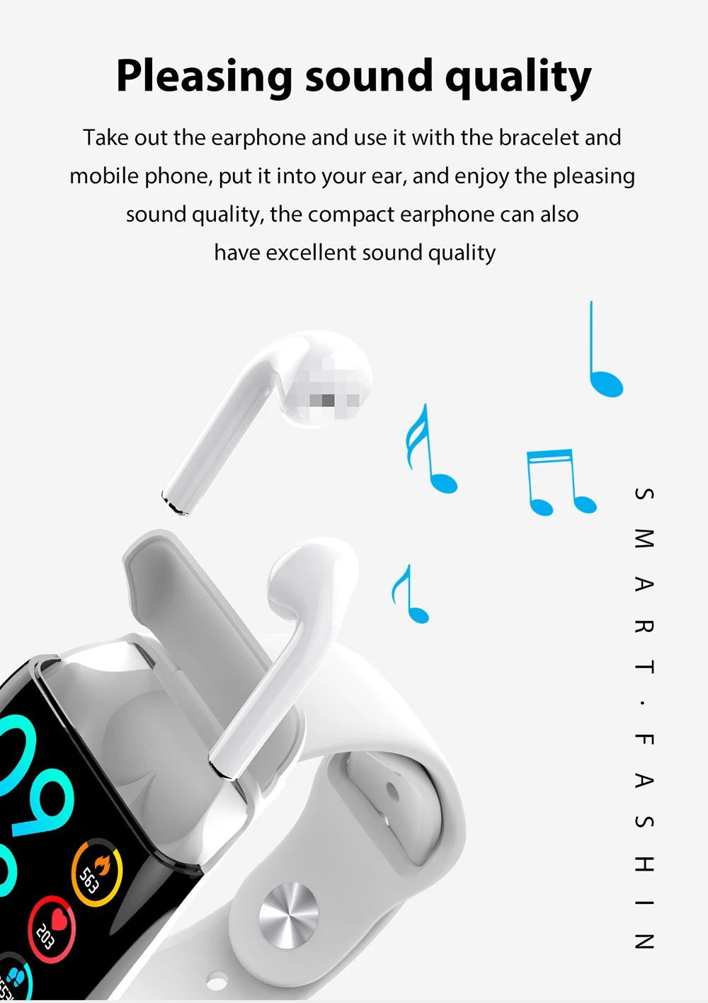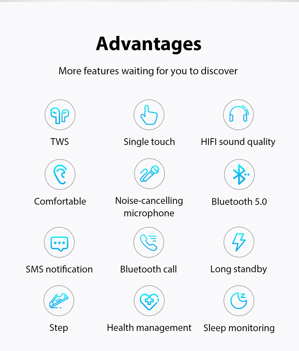 * Дополнительные функции: поддержка нажатия клавиш, предыдущей песни, следующей песни, ответа/отключения, SIRI, нажмите и удерживайте браслет, чтобы повесить телефон, присоединяйтесь к таблице лидеров кампании WeChat (индивидуальный личный аккаунт WeChat можно настроить)