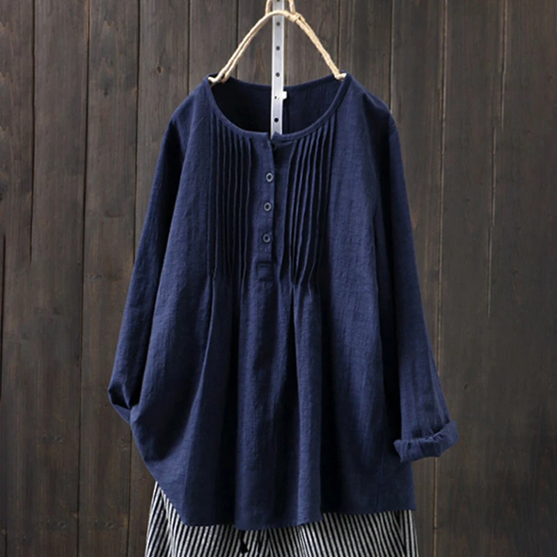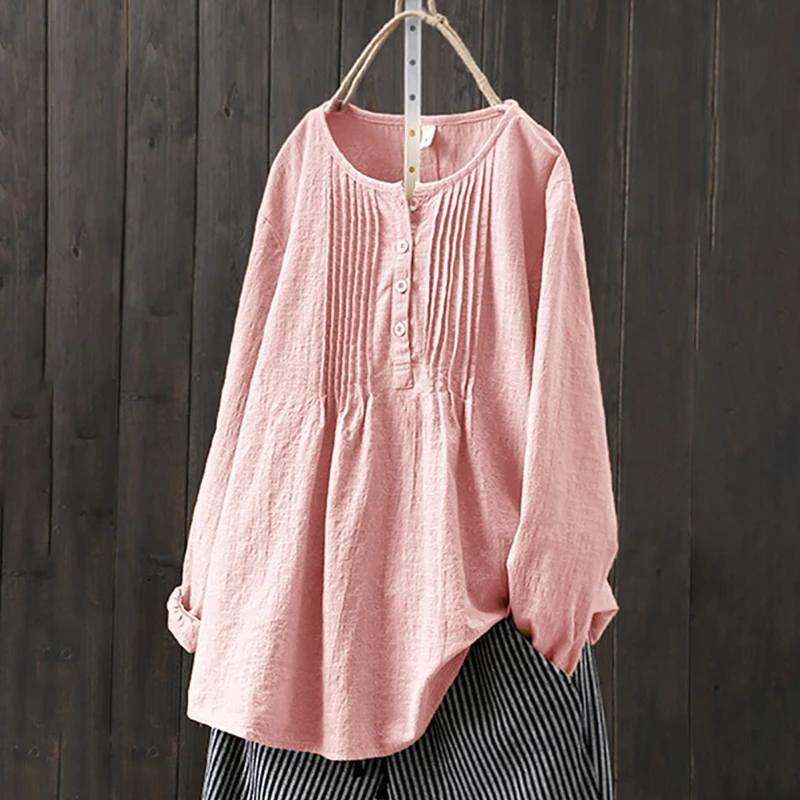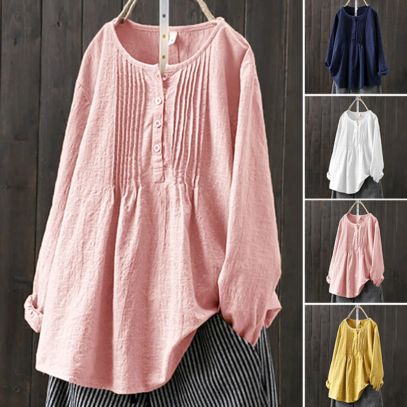 * Item Description: Women Clothing, Summer Casual, Loose Tops T-Shirt, Long Sleeve, Round Neck, with Buttons, Plus Size