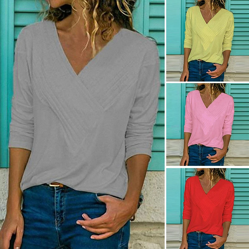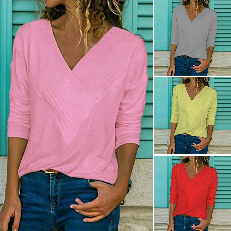 * Item Description: Women Clothing, Summer Fashion Sexy, V-neck T-shirt, Slim Long Sleeve Tops, Plus Size