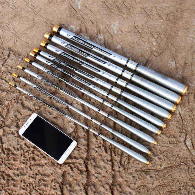 Твердость: Жесткий Позиция: река, водоем, океанская пляжная Рыбалка Категория: силовой ручной стержень Материал: углеродное волокно Цвет: серебристый Размер: 1,8/2,1/2,4/2,7/3,0 m