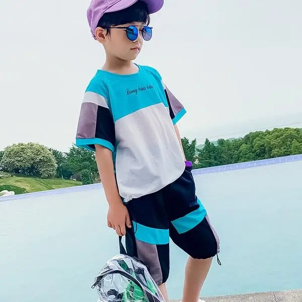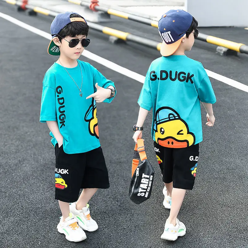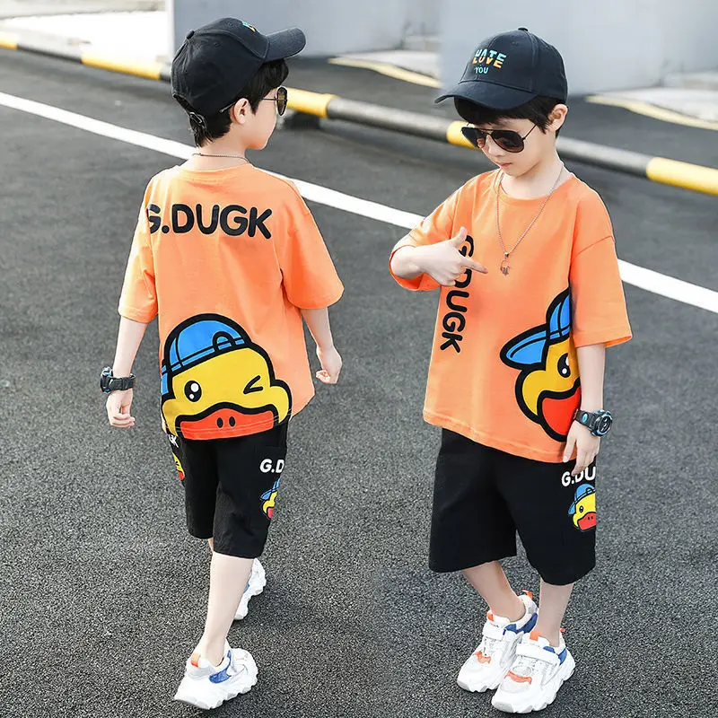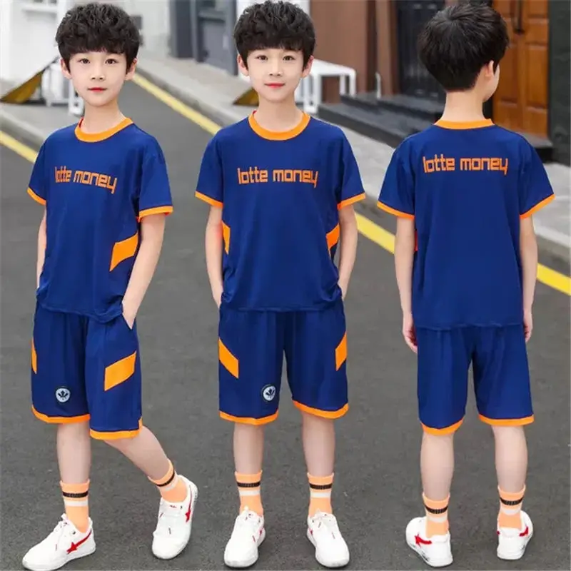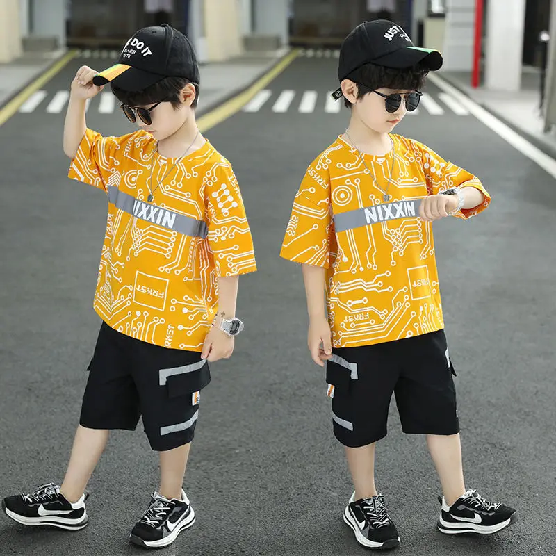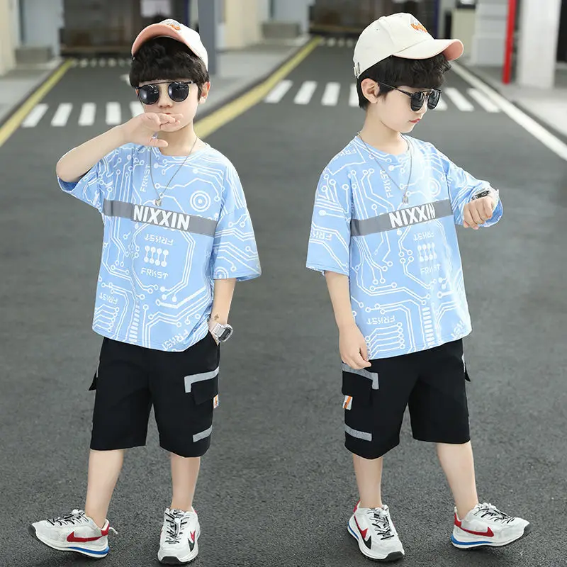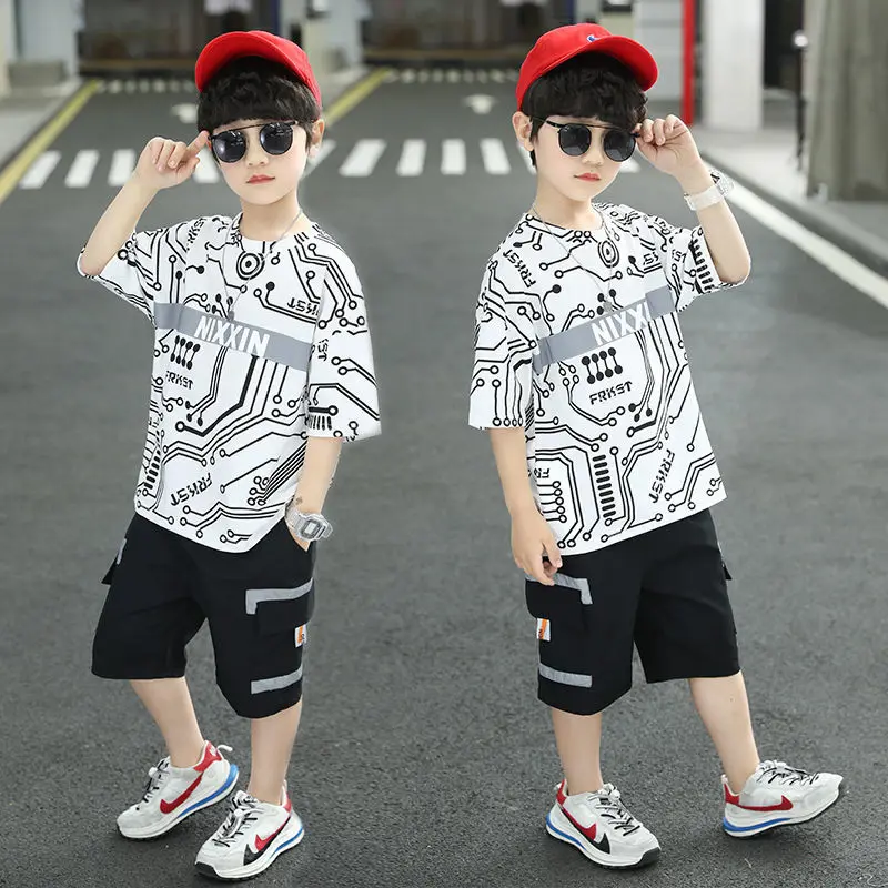 Футболка с короткими рукавами для больших мальчиков + шорты, штаны спортивные комплекты из 2 предметов летняя детская одежда новые летние костюмы для мальчиков, От 3 до 13 лет