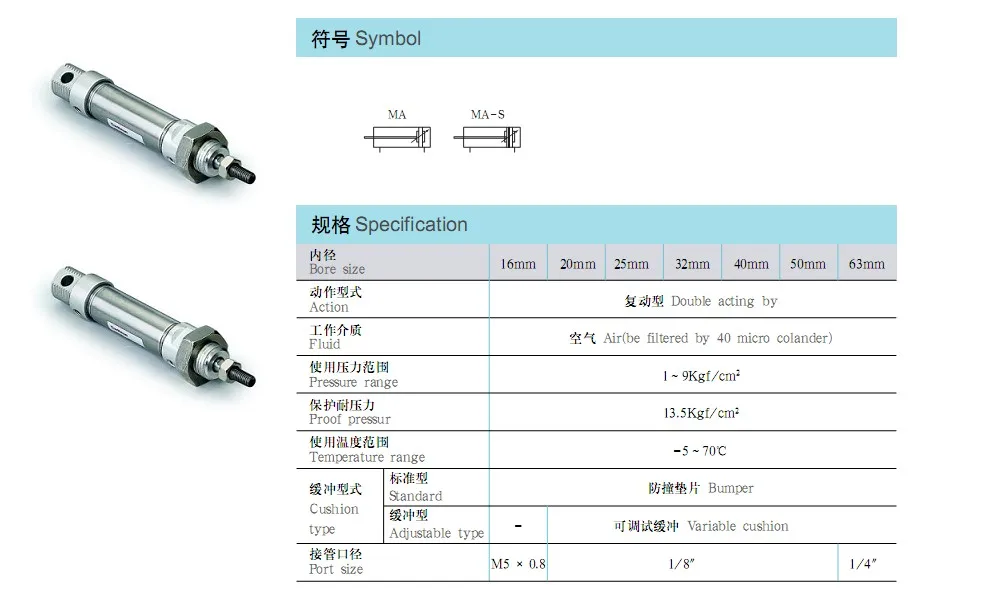 Пневматический стандартный воздушный цилиндр с отверстием 50 мм ход 60 порт 1/4