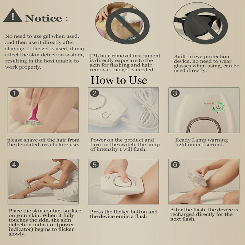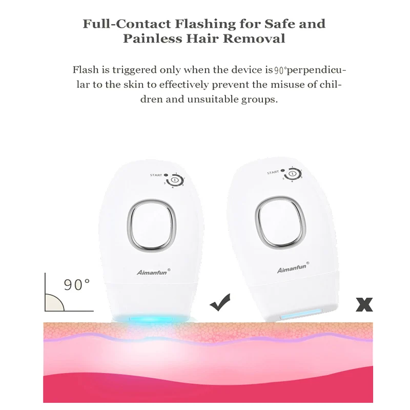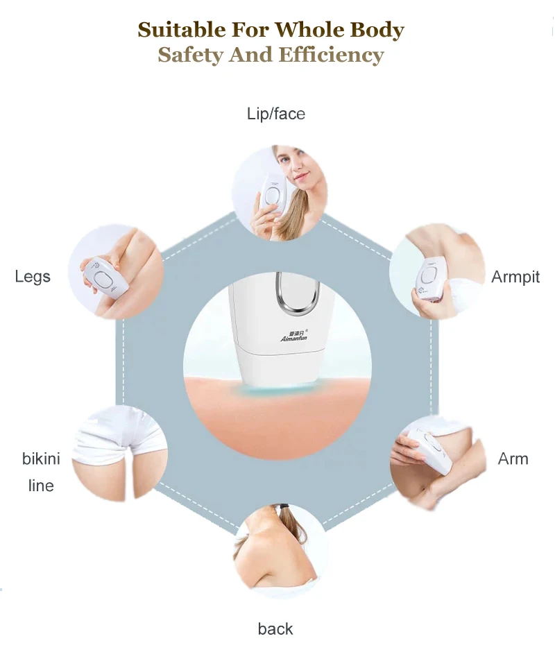 Система удаления волос IPL использует ту же безопасную и клинически доказанную технологию IPL (интенсивный импульсный светильник), которую используют профессиональные дерматологи и салоны красоты. Поэтому вы будете в полной безопасности, когда сделаете это выбранное вами устройство для удаления волос. Вы можете носить очки при использовании устройства.