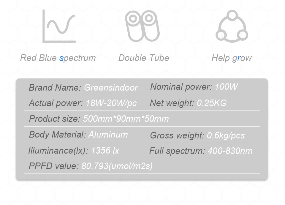Двойная трубка : Светильник для выращивания имеет две трубки, которые ярче, чем аналогичный светильник для выращивания на рынке. С крышкой прожектора: Это может помочь растениям полностью впитать светильник s, повысить эффективность использования светильник. Рассеивание тепла: Этот продукт изготовлен из авиационного охлаждения алюминия. Он может держать продукт прохладным, когда он работает. Полный спектр: Спектра нашей продукции является 400-830nm, этот растительный светильник перенял импортный светодиодный чип, светильник Тип источника находится ближе к солнцу, со всеми светильник источников, необходимые для рост растений, успешно выращивайте растения здоровыми. Простота установки: Подключи и работай напрямую, никаких проводов и ремонтных работ не требуется, прост в установке. Вы можете легко контролировать рабочее состояние каждой лампы для защиты роста растений с более подходящим освещением. Применение: Подходит для комнатных саженцев растений, выращенных в гидропонной теплице в вашем доме или размещенных в вашем офисе. Это помогает ускорить рост горшечных растений, цветущих растений, листвы и суккулентных растений.
