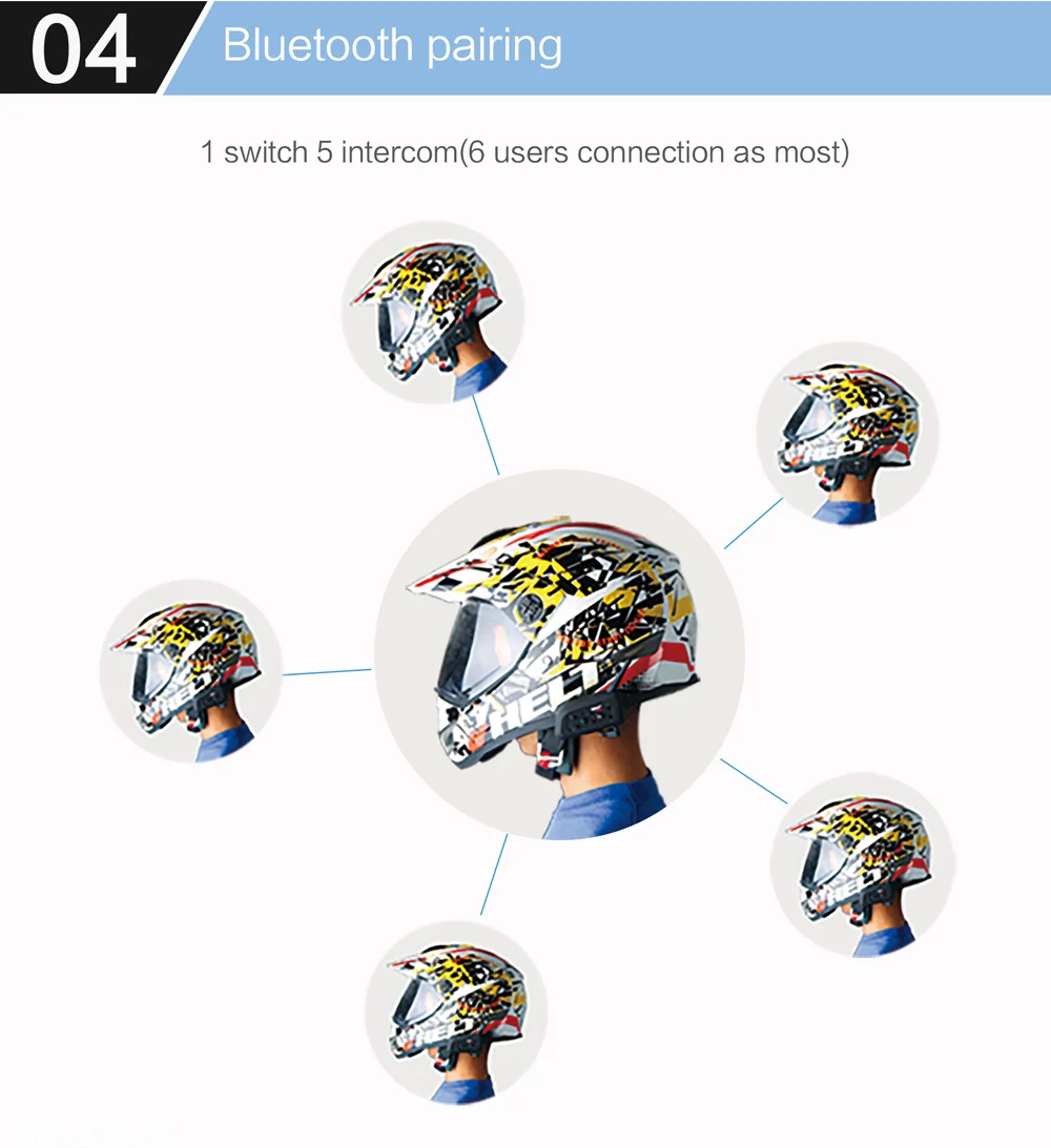 Bluetooth мотоциклетный шлем Интерком с дальностью разговора до 1200 метров