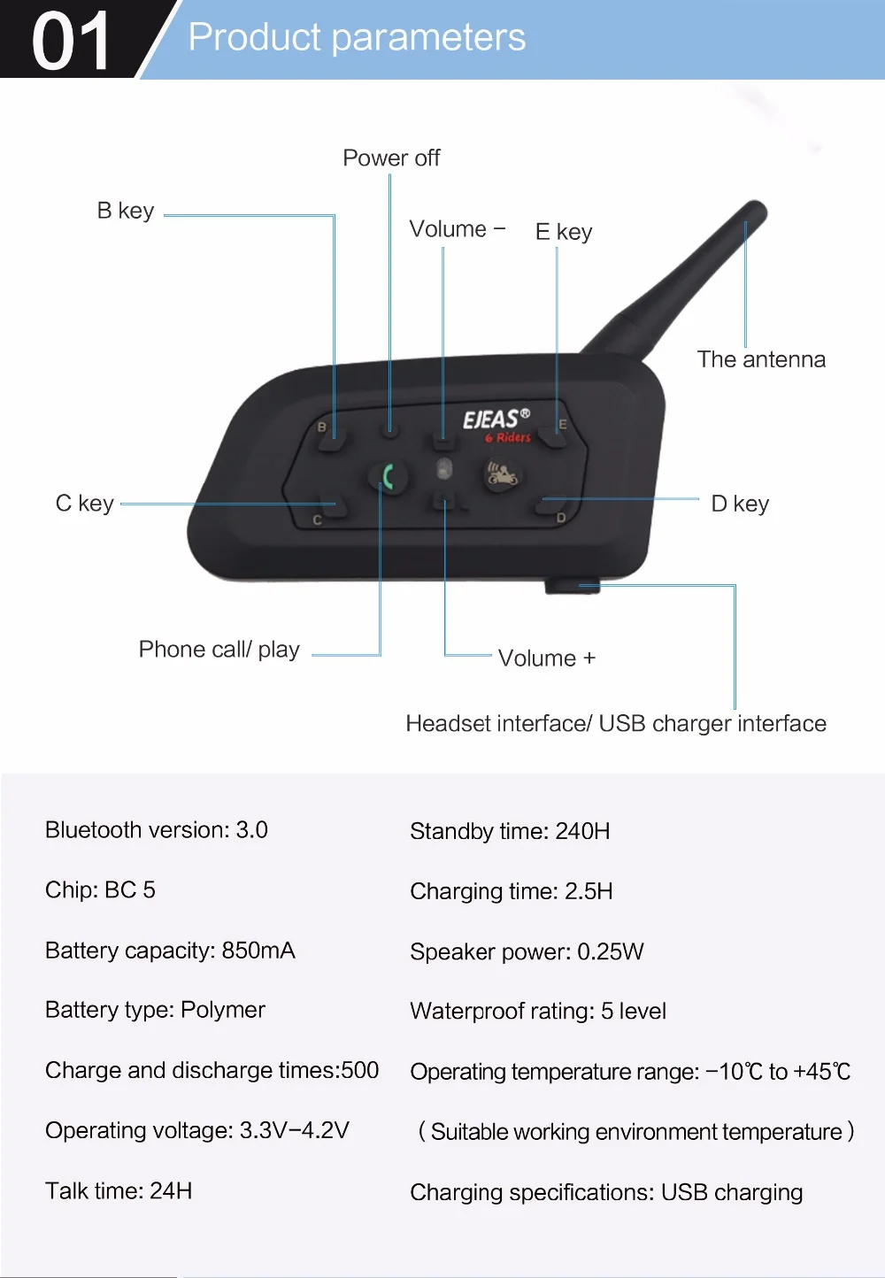 1/2 x EJEAS V6 Pro Шлем Интерком