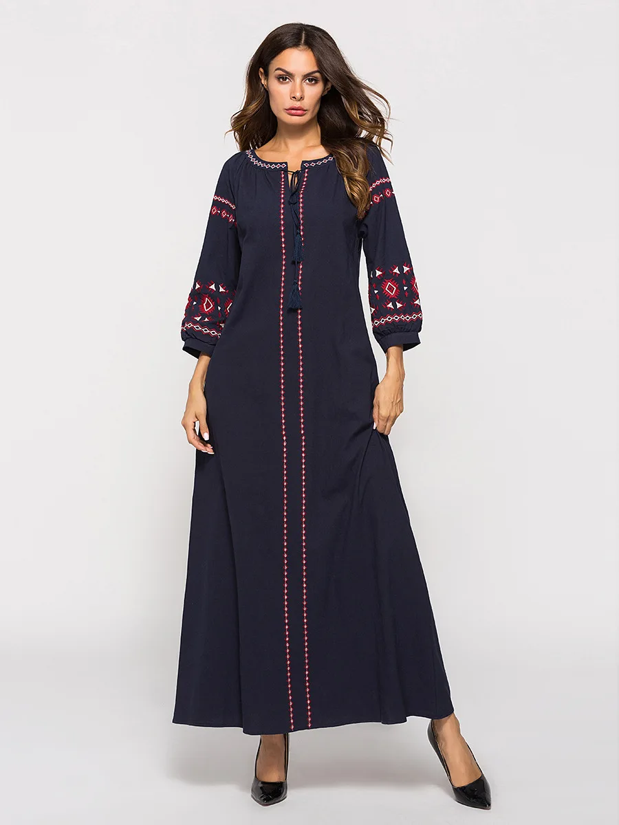 Женское мусульманское длинное платье макси, вечернее платье с вышивкой в Дубае, Марокканское