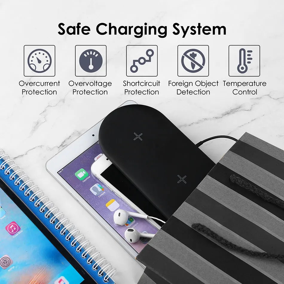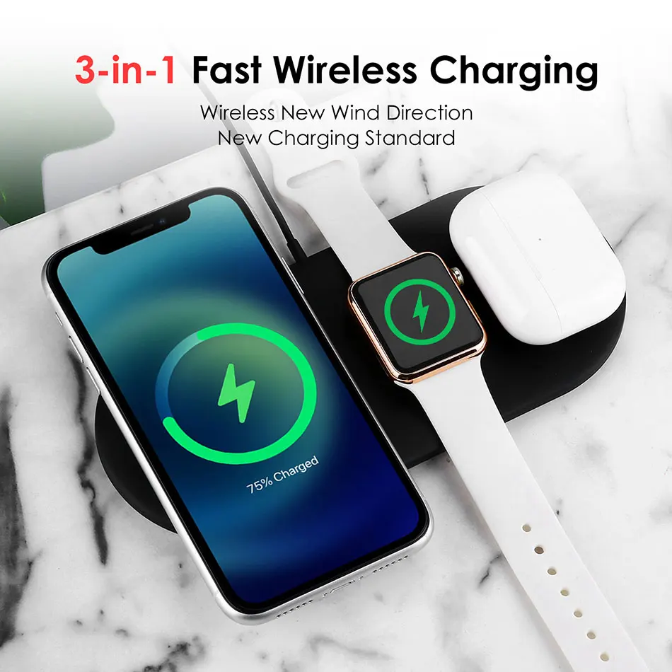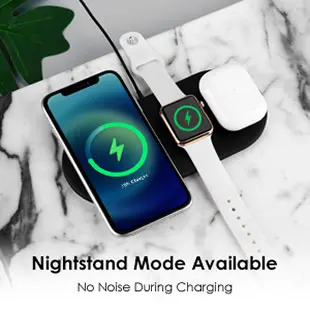 Без беспроводной зарядки 3 в 1 вам нужны три кабеля для зарядки для подключения телефона, часов и AirPods. Теперь вам нужна только Беспроводная зарядная панель, расположенная на вашем столе или прикроватном столике, и вы можете достичь быстрой беспроводной зарядки 3 в 1. Простой и удобный.