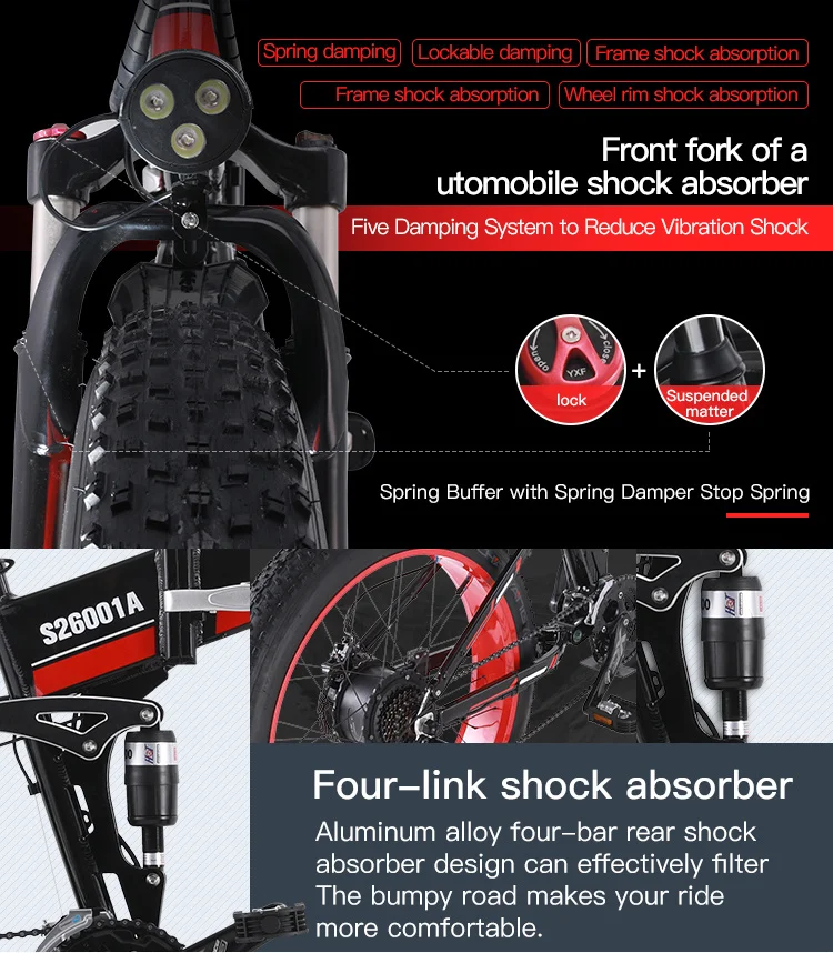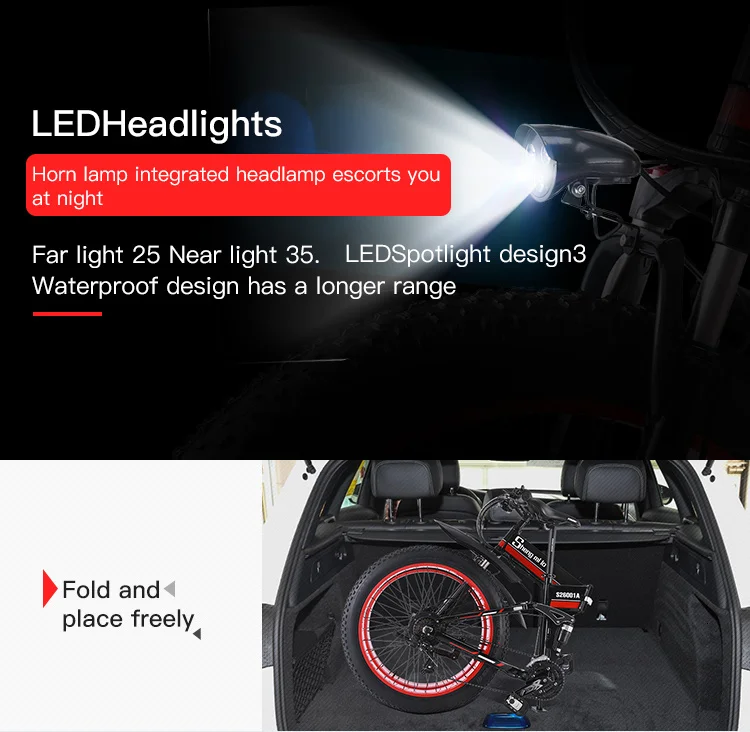 | 26 дюймов складной электрический скутер 48 в 1000 Вт двухколесный Электрический велосипед 45 км/ч внедорожный мощный снег Электрический горный велосипед |