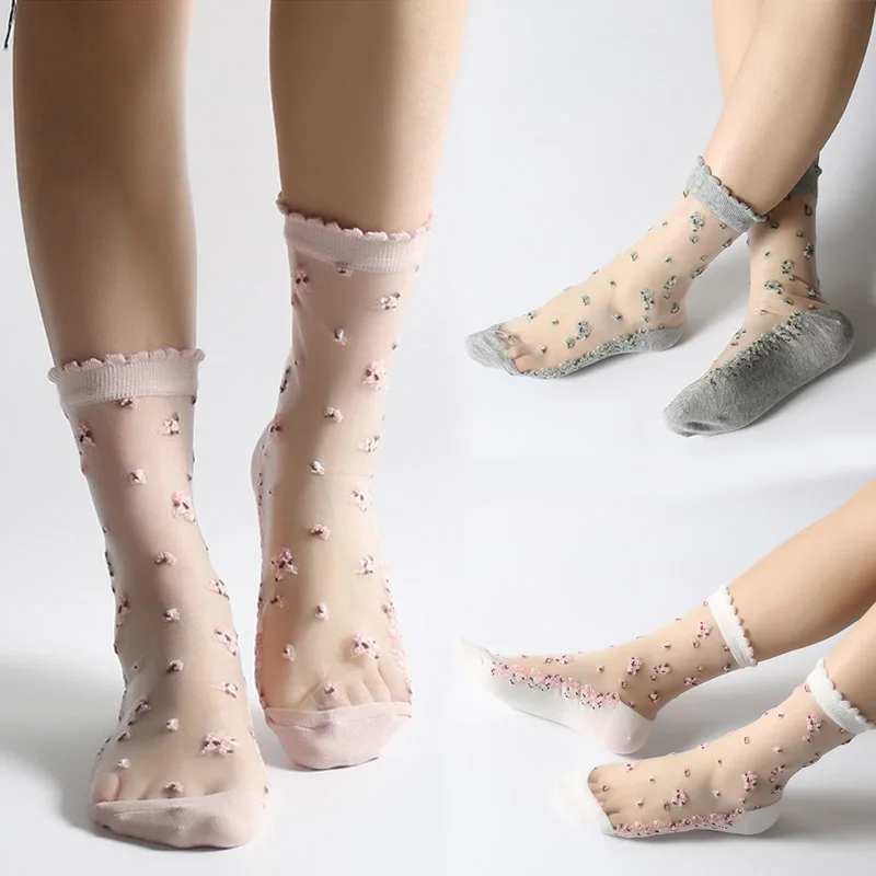 Носки женские прозрачные короткие шелковые тонкие дышащие мягкие в зеленую и