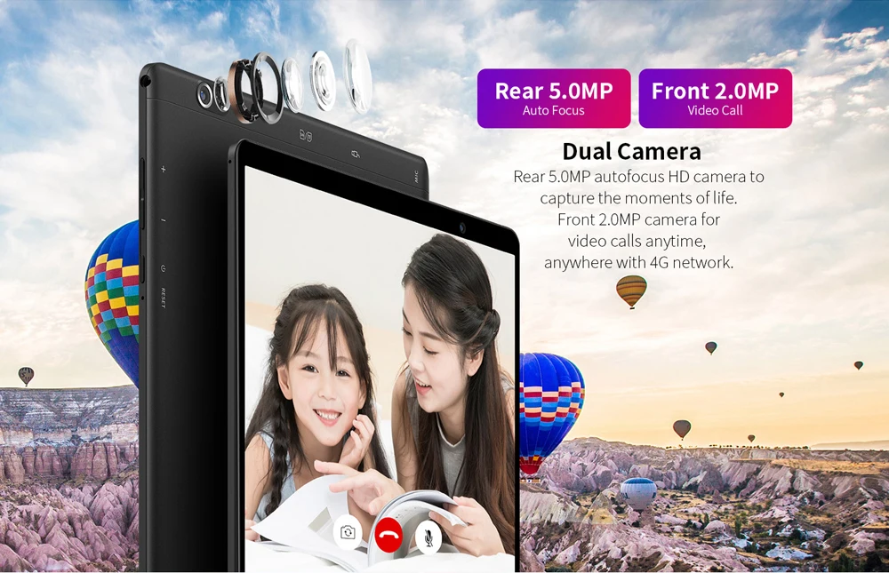 Основные характеристики: Подарок: защита экрана + стилус 1: Восьмиядерный, ARM Cortex A7 @ 1,6-2,0 ГГц; 2: 3G байт LPDDR3 3: встроенная память 64G байт NAND Flash 4: 10,1 дюйма IPS HD 1280*800 разрешение, 2.5D стеклянный экран. 5. Две sim-карты, две камеры, задняя камера 5.0Mp 6. Поддержка Google play store