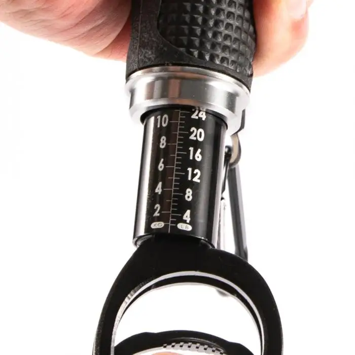 The Red Fish Lip Grabber has a 40-pound scale and a 28-inch ruler