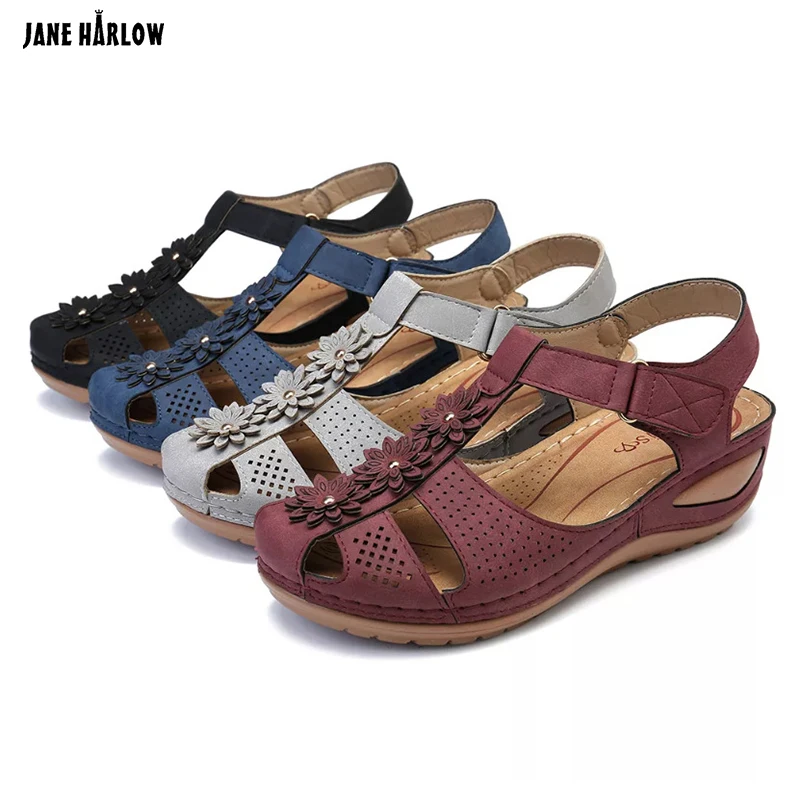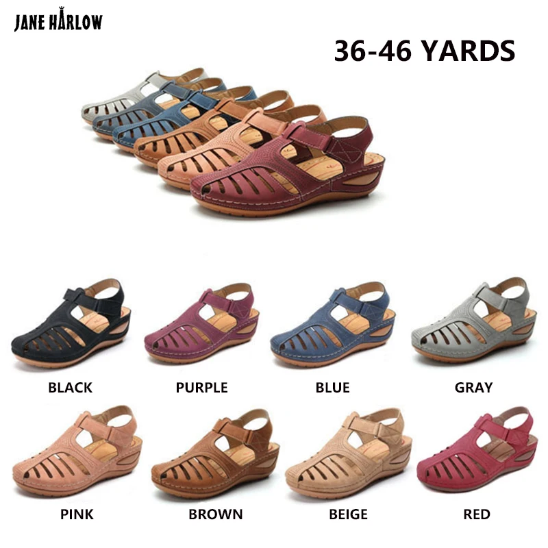 Summer Retro Women Sandals Non-slip Large Size Open-toed Shoes Multicolor Ladies Sandals Round Head Comfortable Women's SandalsUS $ 32.96 /