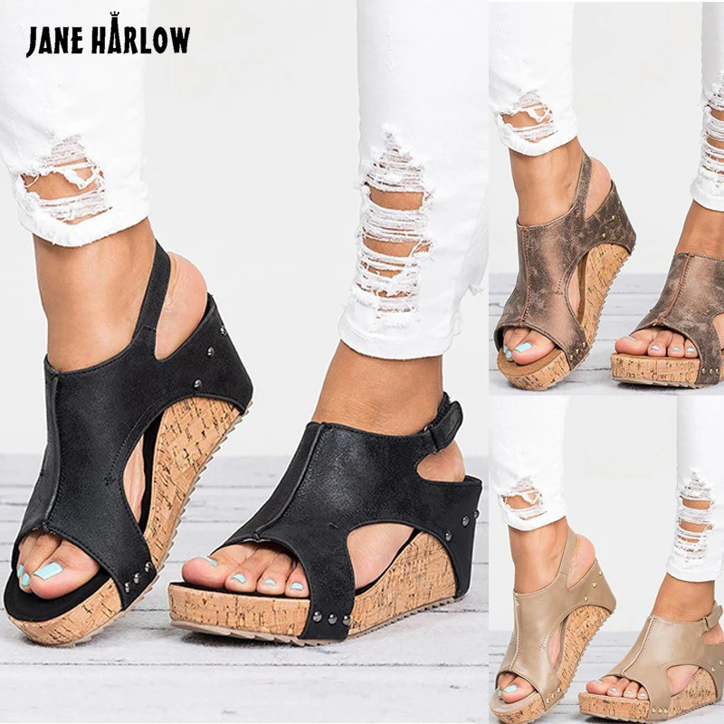 Women Sandals Plus Size Wedges Shoes Summer Platform Shoes Women Leather Sandals Zapatos De Mujer for Women High Heels SandalsUS $ 41.43 /
