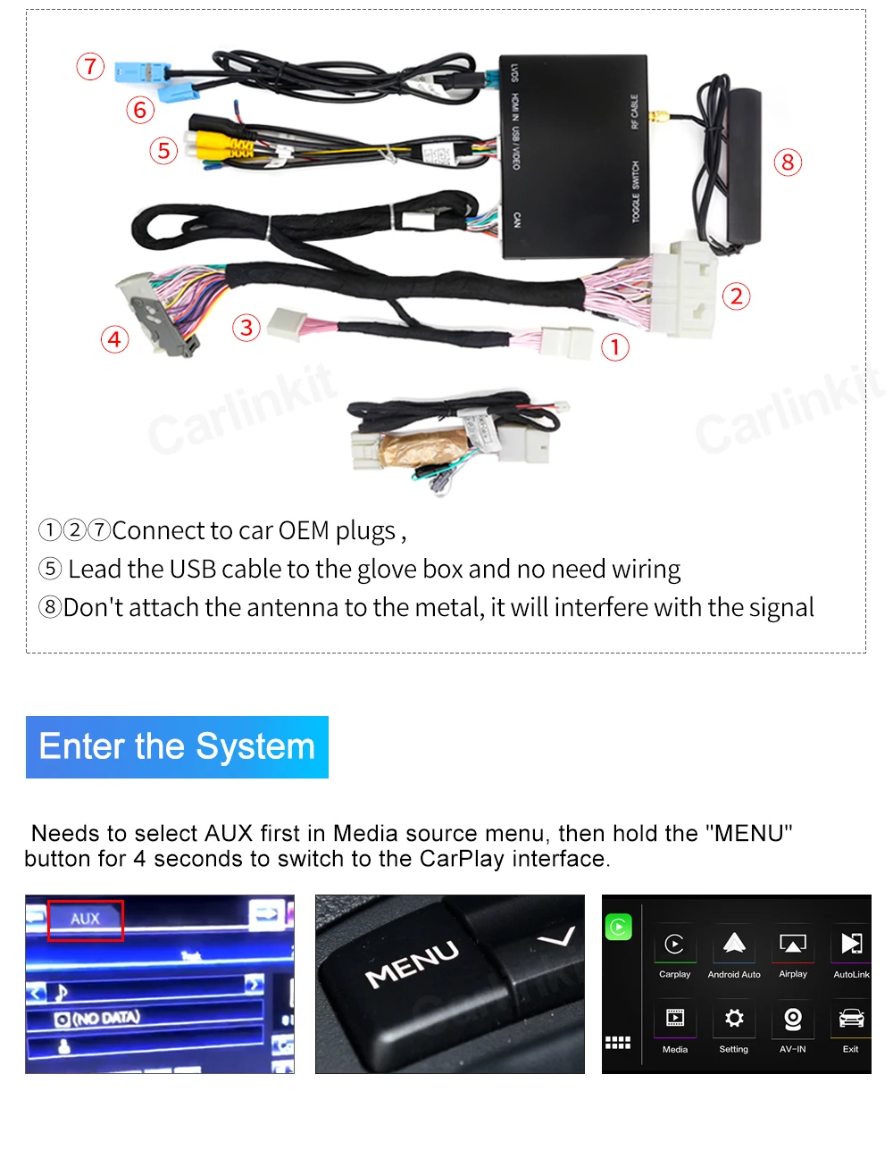 1. Перед покупкой, пожалуйста, отправьте фото центральной консоли автомобиля продавцу для подтверждения и сообщите модель Lexus и age.2. Если у вас есть какие-либо вопросы о продукте, пожалуйста, используйте WhatsApp, чтобы связаться с продавцом Carlinkit.