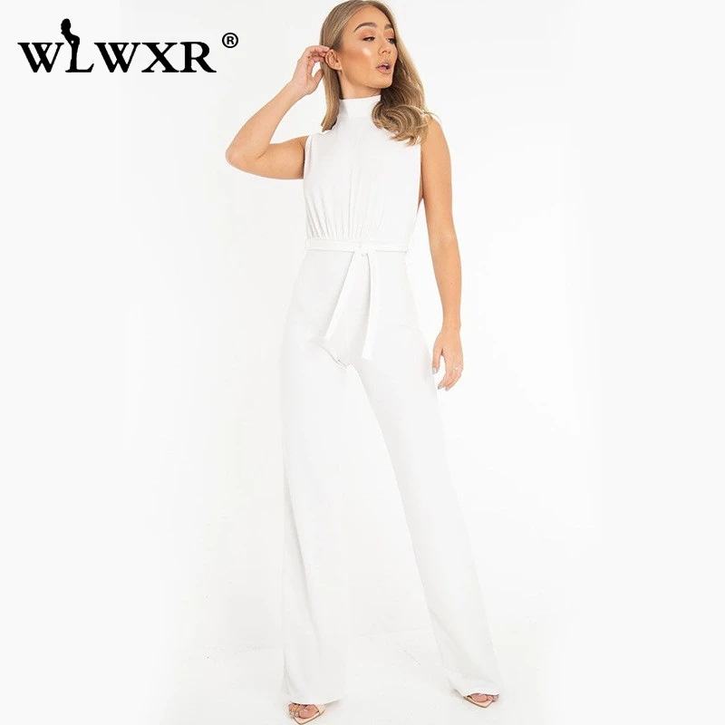 WLWXR женский сексуальный комбинезон с широкими штанинами, женский комбинезон с поясом, клубный обтягивающий белый черный летний женский комбинезон