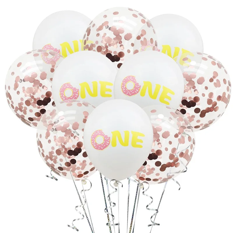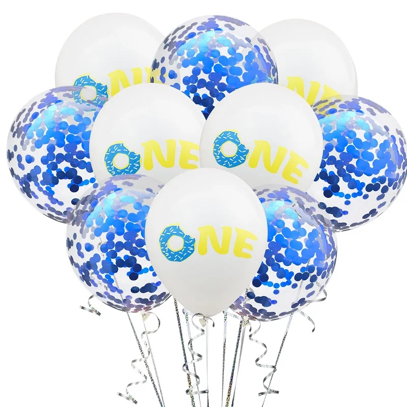 10 шт., воздушные шары с принтом пончика, с блестками, конфетти, воздушные шары для маленьких детей, для первого дня рождения, вечеринки, украшения, пончики, товары для вечеринок