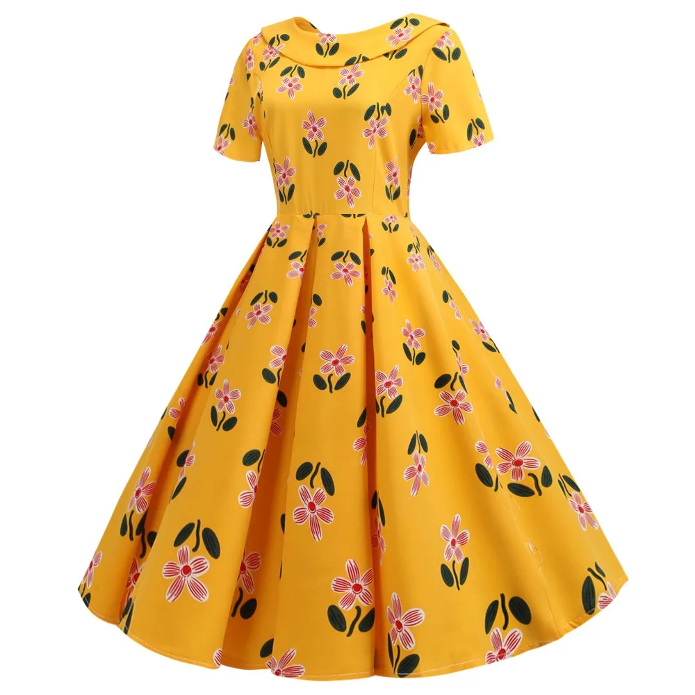 * Винтажный цветочный принт с круглым вырезом и Европейский королевский стиль придают вам элегантный стиль в стиле ретро; Облегающий и расклешенный силуэт подчеркивает Вашу фигуру