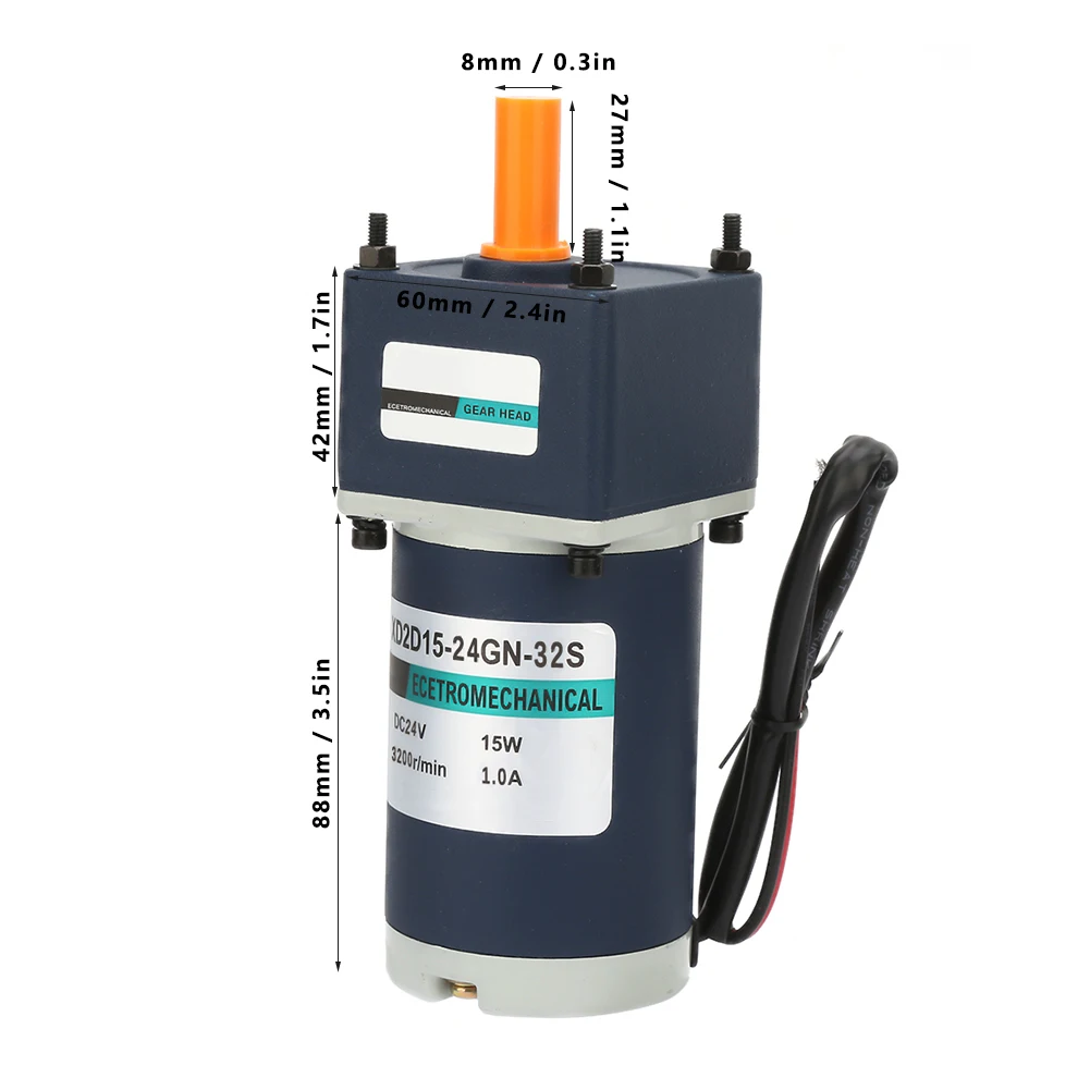 Особенности: Мотор-редуктор-это определенный тип электрического двигателя, который предназначен для производства высокого крутящего момента. Поддержка вращения по часовой стрелке и против часовой стрелки. Используется катушка из чистой меди для плавного бега и длительного срока службы. Металлическая шестерня с хорошей износостойкостью может обеспечить большой крутящий момент передачи. Широко применяется для автоматического оборудования, мелкомасштабной сборочной линии, пищевого оборудования, упаковочного оборудования и многого другого. Спецификация: Модель: XD2D15-24GN-32S Напряжение: 24 В Мощность: 15 Вт Скорость без нагрузки двигателя: 3200 об/мин Ток без нагрузки двигателя: 0,5a Скорость нагрузки двигателя: 3000 об/мин Ток нагрузки двигателя: 1.0A Крутящий момент: 0,5 кг. См Класс изоляции: класс B Размер мотора: 60*60*130 мм/2,4*2,4 * 5.1in Размер выходного вала: 8*27 мм/0,3 * 1.1in Скорость выходного вала (опционально): Коэффициент уменьшения 3, 1067 об/мин Коэффициент уменьшения 5, 640 об/мин Передаточное отношение 7,5, 430 об/мин Коэффициент уменьшения 10, 320 об/мин Передаточное отношение 12,5, 260 об/мин Коэффициент уменьшения 15, 210 об/мин Коэффициент уменьшения 18, 180 об/мин Коэффициент уменьшения 20, 160 об/мин Коэффициент уменьшения 25, 130 об/мин Коэффициент уменьшения 30, 110 об/мин Коэффициент уменьшения 36, 90 об/мин Коэффициент уменьшения 50, 65 об/мин Коэффициент уменьшения 60, 50 об/мин Коэффициент уменьшения 75, 40 об/мин Коэффициент уменьшения 100, 30 об/мин Коэффициент уменьшения 150, 20 об/мин Коэффициент уменьшения 180, 17 об/мин Коэффициент уменьшения 200, 16 об/мин Посылка: 1 x мотор-редуктор