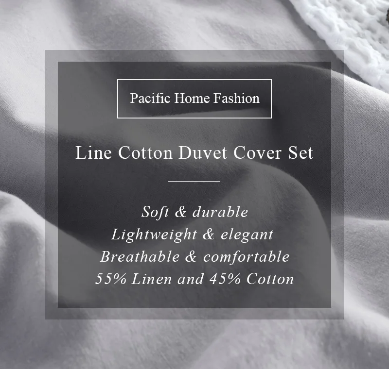 55% лен и 45% хлопок. В сочетании с дышащим хлопком и прочным полотном пододеяльник делает его более мягким, гладким и более светящимся после стирки, обеспечивает вам более здоровый сон. Льняной хлопок отличается высокой прочностью и может прослужить много лет при надлежащем уходе. Хлопково-льняная ткань впитывает пот на вашей коже и прохладно летом и тепло зимой.