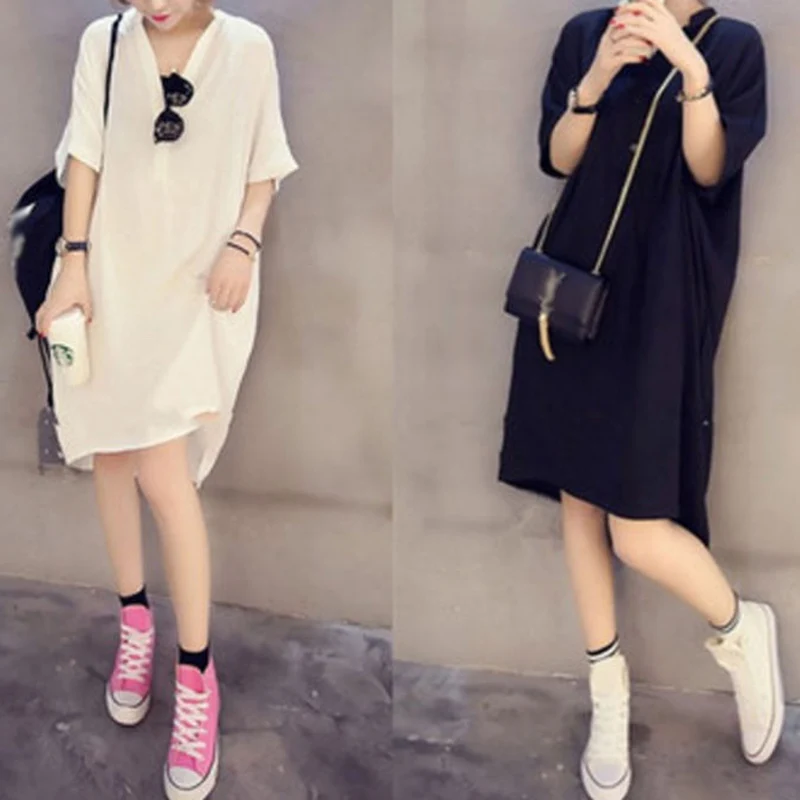 * Описание товара: женская шифоновая футболка с v-образным вырезом и коротким рукавом, Однотонная футболка, Пляжное Платье