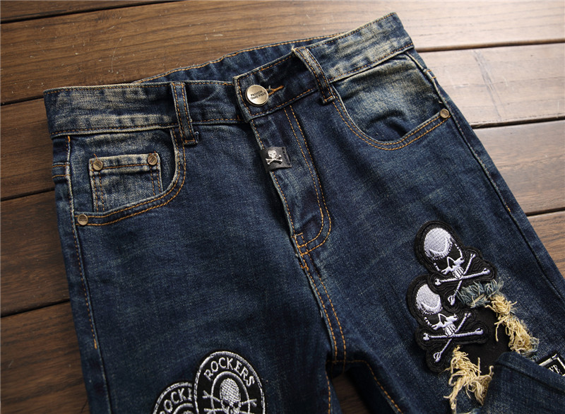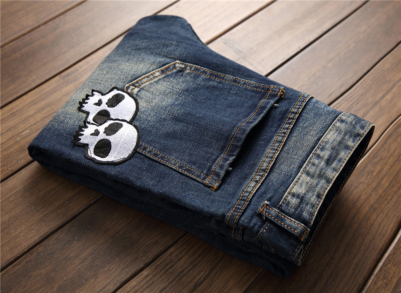 Джинсы мужские Стрейчевые с цветным принтом брендовые Роскошные модные Брюки slim