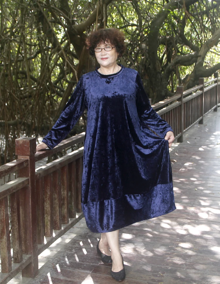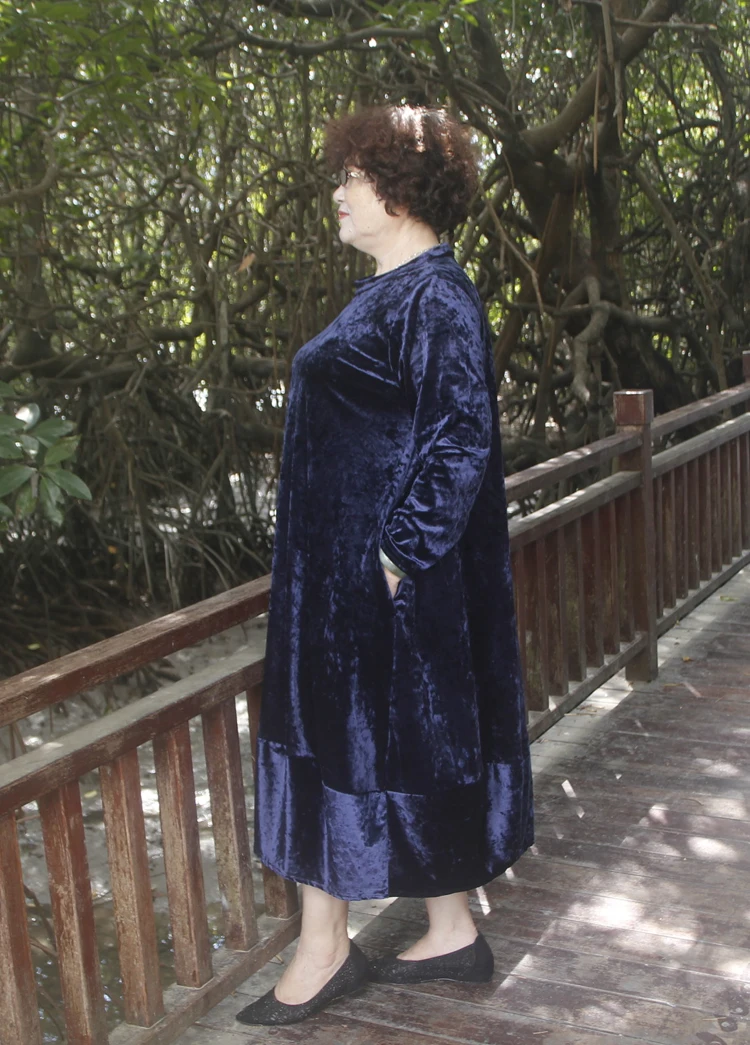 Зимние базовые теплые бархатные платья для мамы старого размера плюс, хит продаж, женское платье до середины икры большого размера DJ484