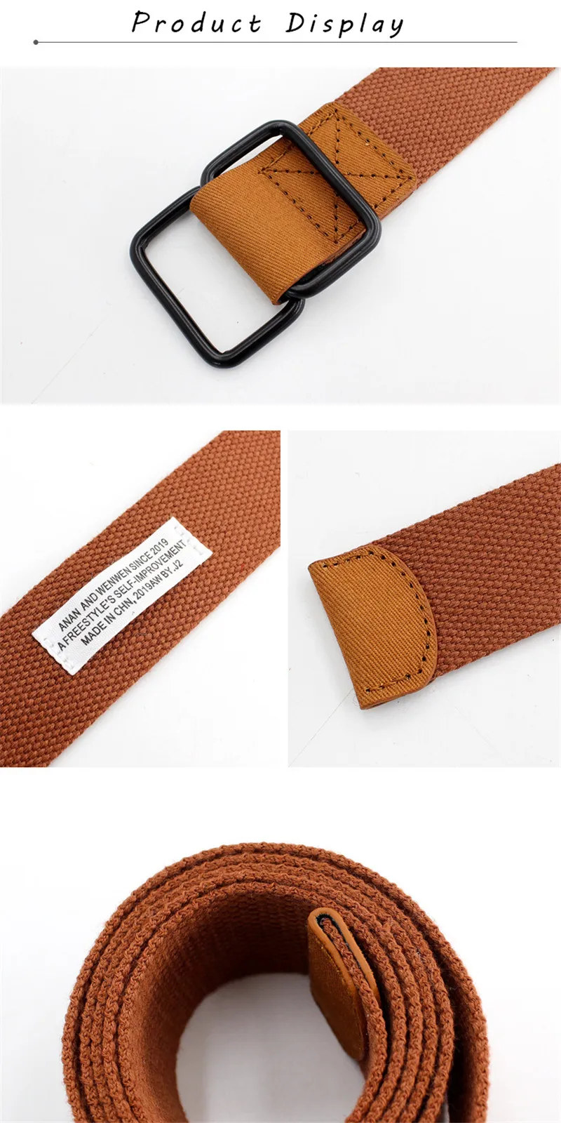 Длина: 110 см, 130 см Ширина: 3,8 см Материал: парусина Тип: однотонный холщовый ремень Стиль: Повседневная мода Пол: Женщины и мужчины Цвет: черный, серый, красный, коричневый Форма пряжки: квадратная Способ крепления: двойная кольцевая пряжка