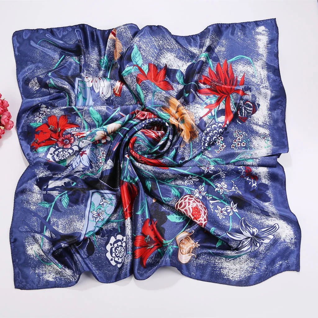 Шейный платок для галстука, квадратный шарф, шали, шелковые атласные женские шарфы, 90x90 см