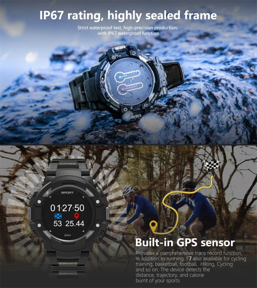 F7 0,95 дюймов smart watch цветной экран GPS сердечный ритм шаг мониторинга сна температура измерения высоты IP67 спортивный браслет