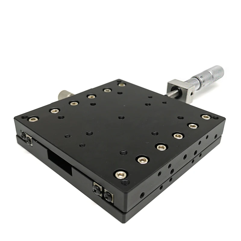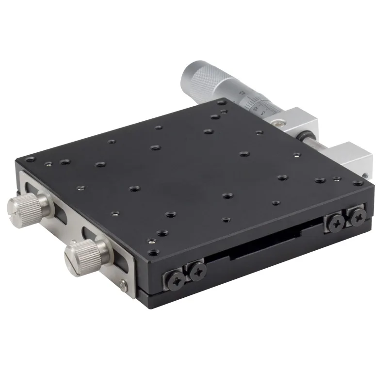■Принятие поперечного ролика может достичь высокой точности, плавного движения. ■Основной материал-алюминиевый сплав, который весит светильник и подходит для использования в других устройствах. ■Различные размеры таблицы на выбор, от 30 мм до 200 мм. ■Два режима вождения на выбор: головка микрометра и точный винт.
