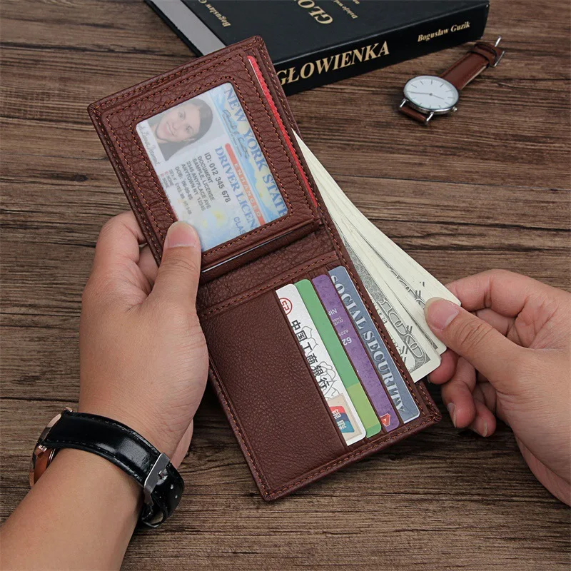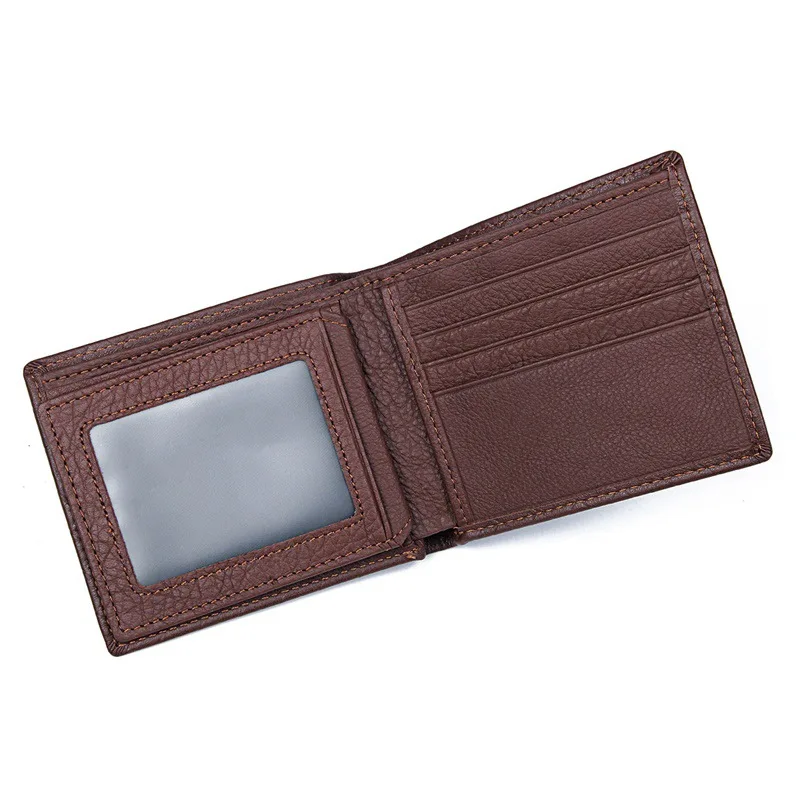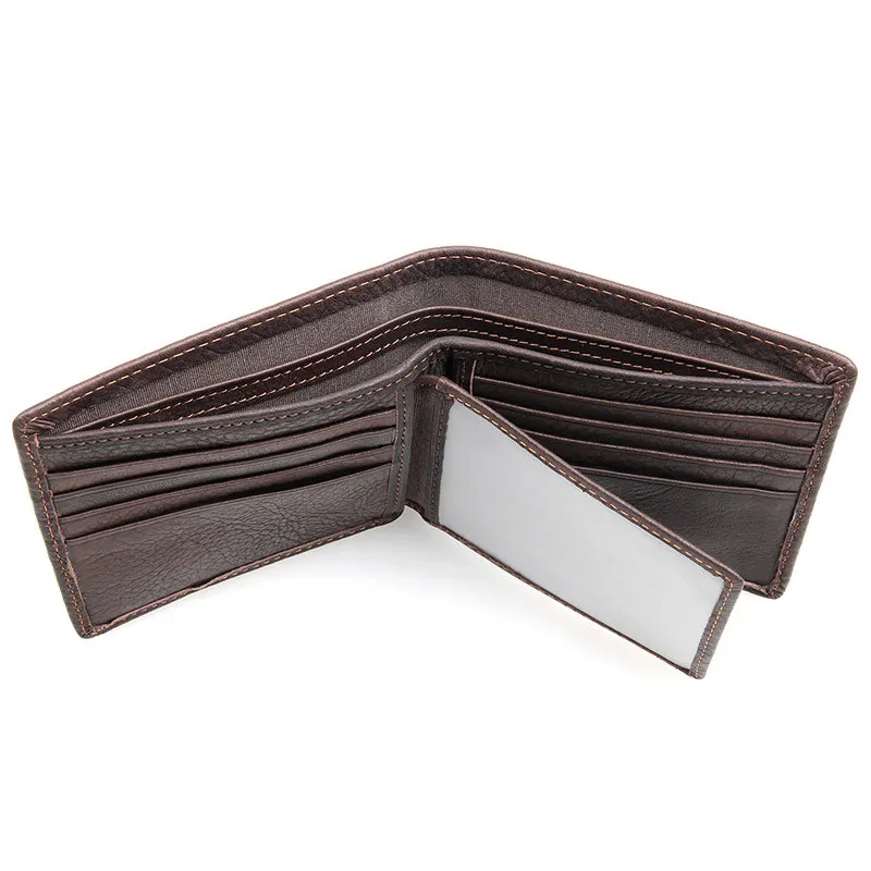 Название товара мужской короткий кожаный бумажник из натуральной кожи Модель 8077C Материал: натуральная кожа/хлопковая подкладка Размеры 11,5 см x 9,5 см Цвет кофе/шоколад Коричневый Логотип OEM на заказ Бумажник фракции, держатель для карт Внутри 8 отделений для карт, 2 отделения для банкнот, 2 дополнительных кармана, 2 окна для карт Прямая поставка принимается