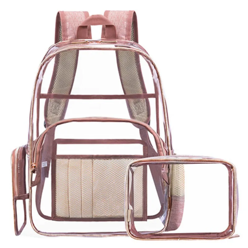 Прозрачный женский рюкзак, Модный женский милый рюкзак из ПВХ, 2 комплекта, рюкзак для девочек-подростков, школьная сумка, однотонный прозрачный рюкзак 166